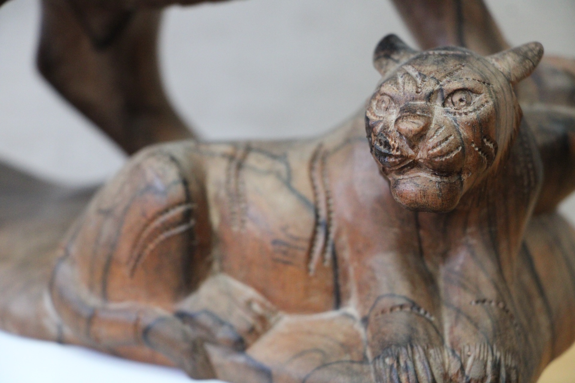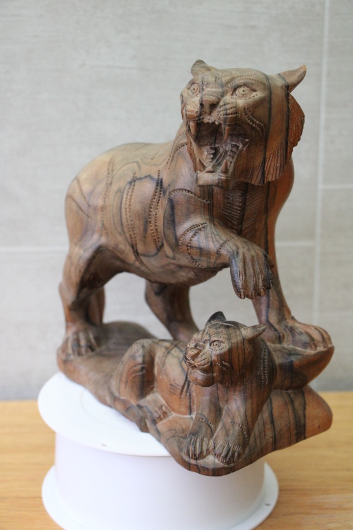 Schitterend bewerkt houten beeldje vervaardigd uit Palissanderhout.