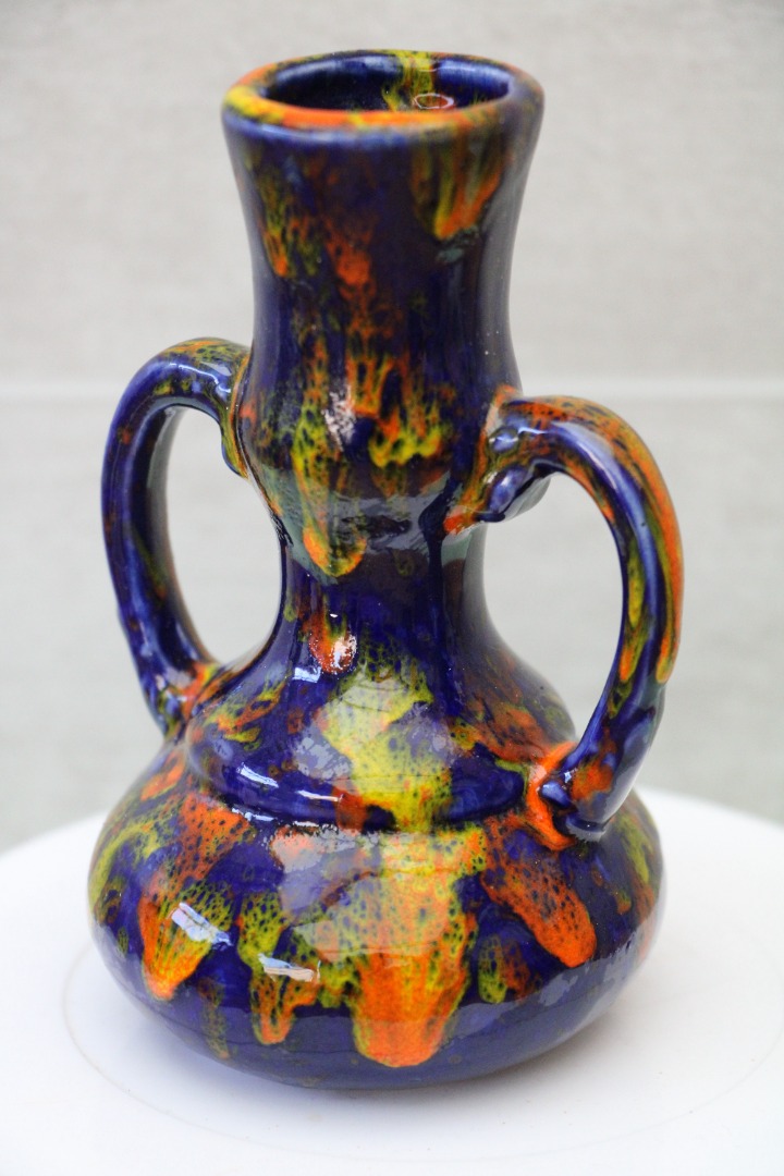 Schitterende   gekleurde geglazuurde vaasje uit Frankrijk..