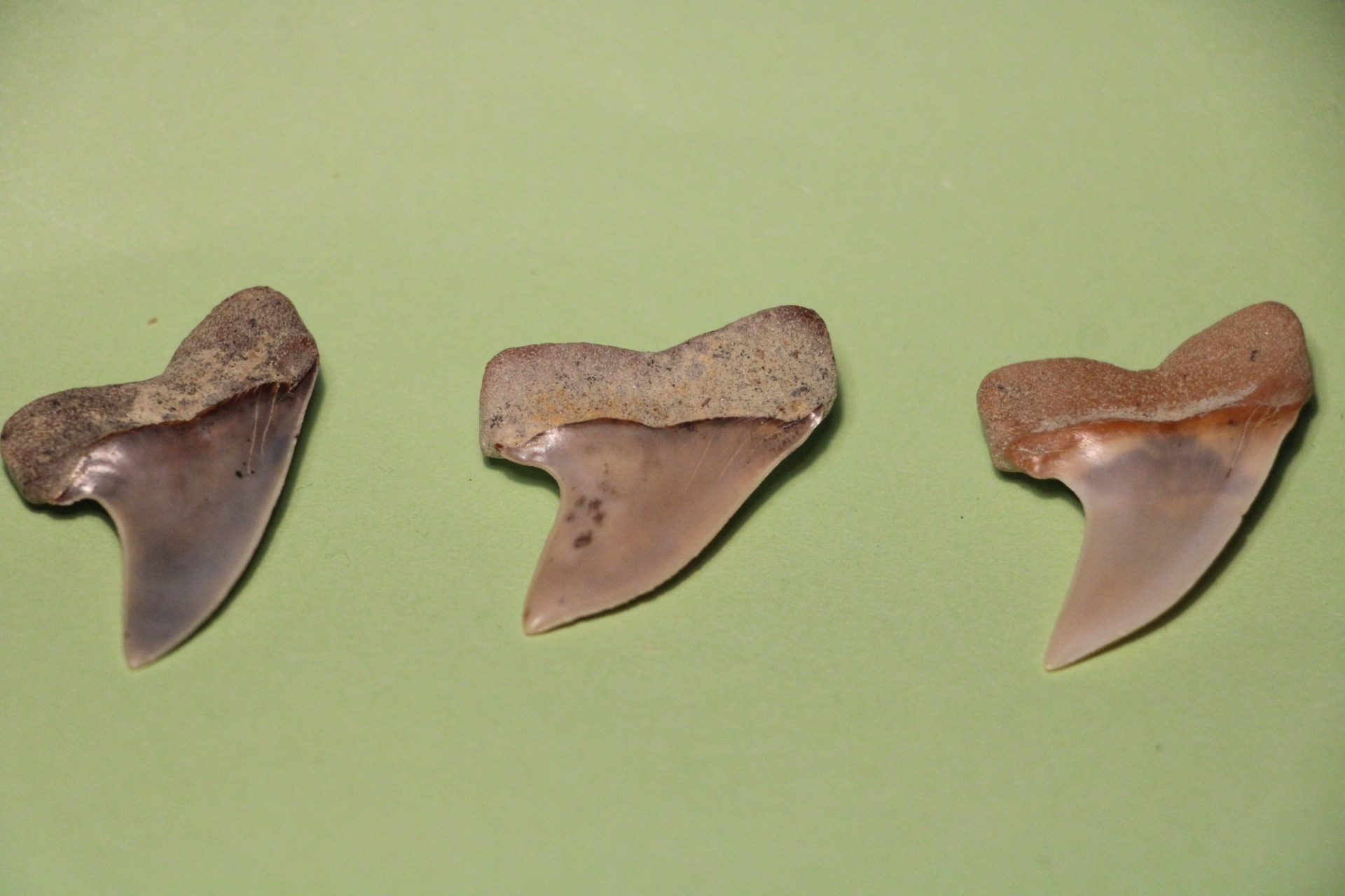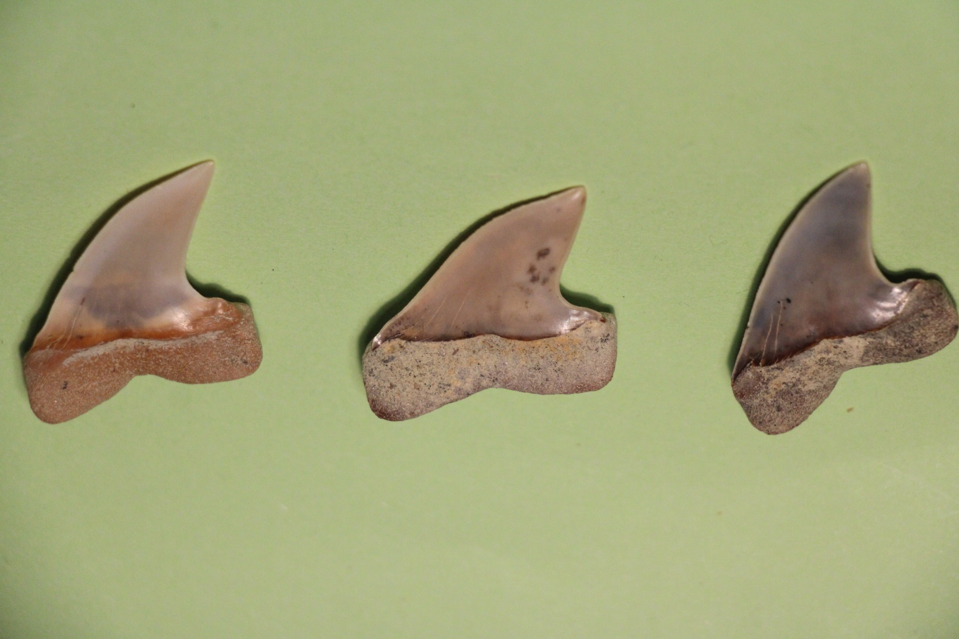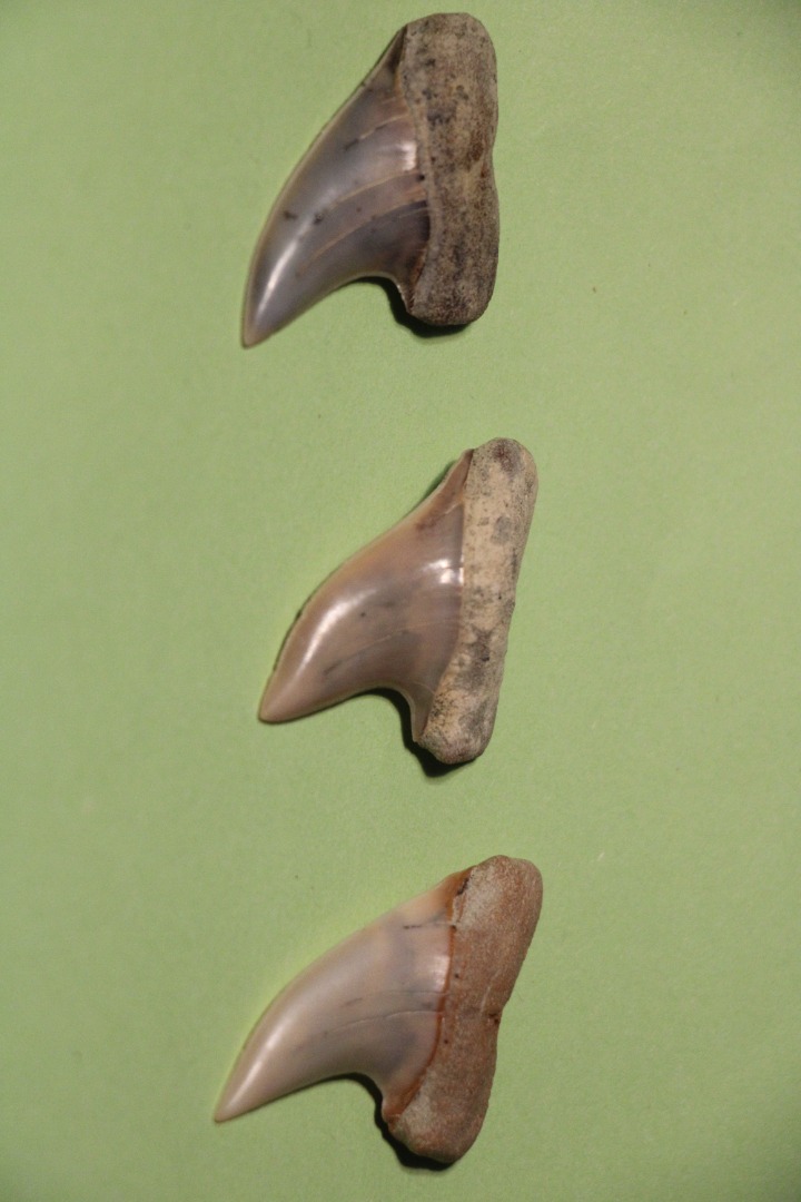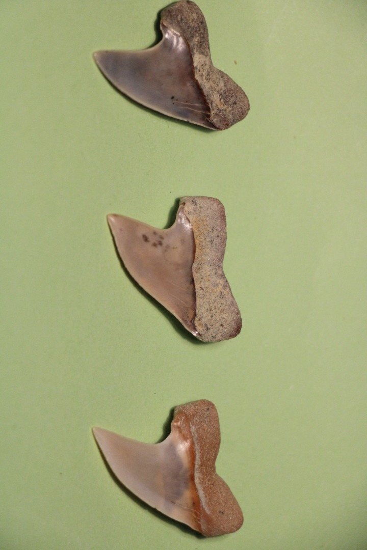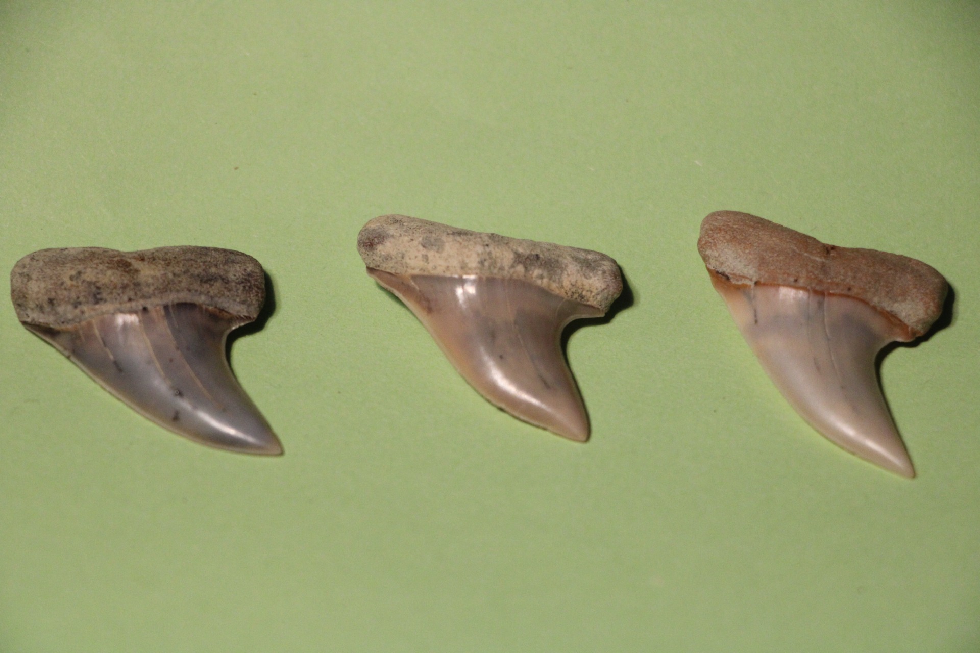Carcharodon (Isurus) hastalis (3x) 3.8 x 2.5 cm , 3.4 x 2.7 cm, 3.6 x 2.5 cm