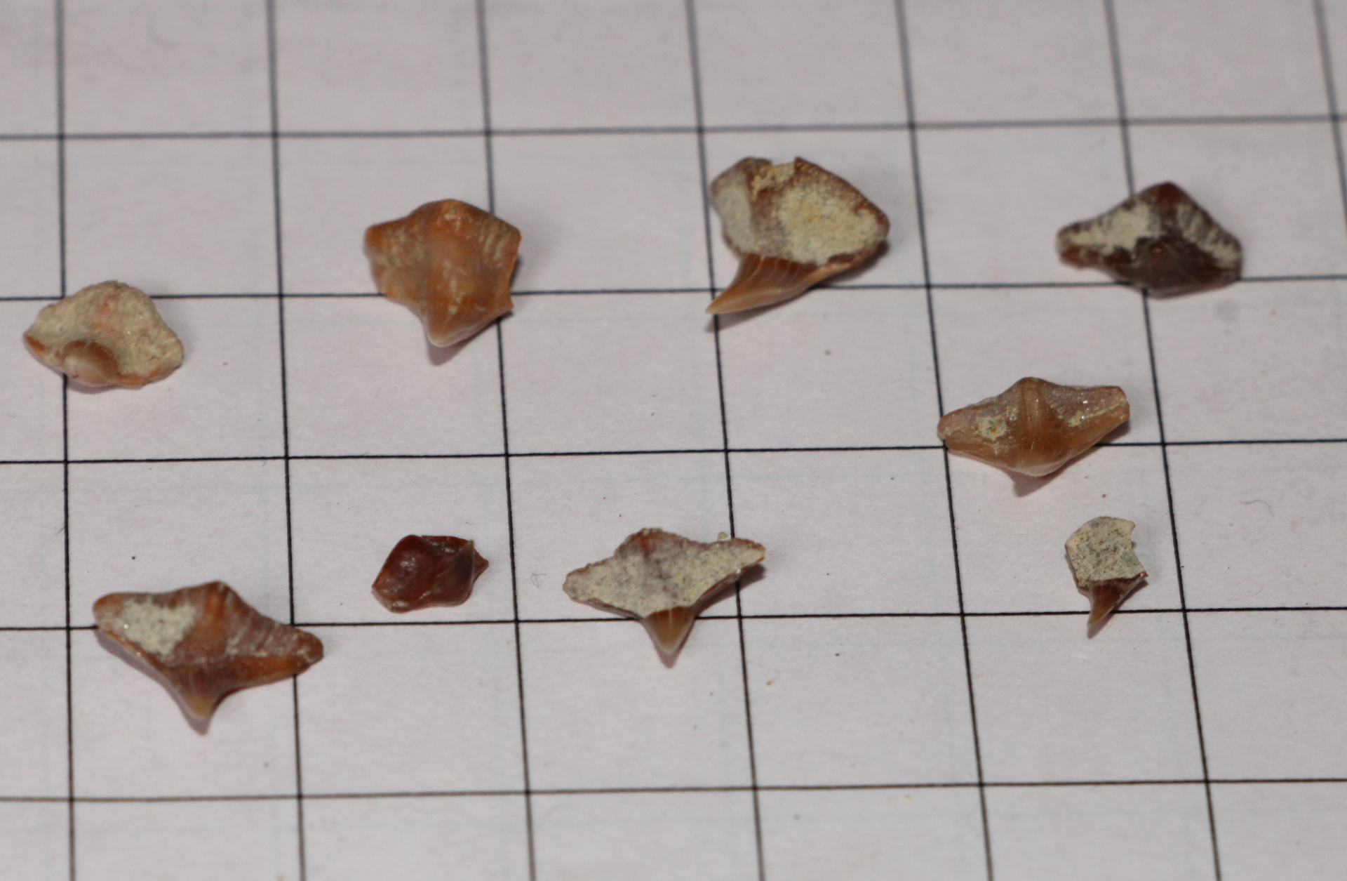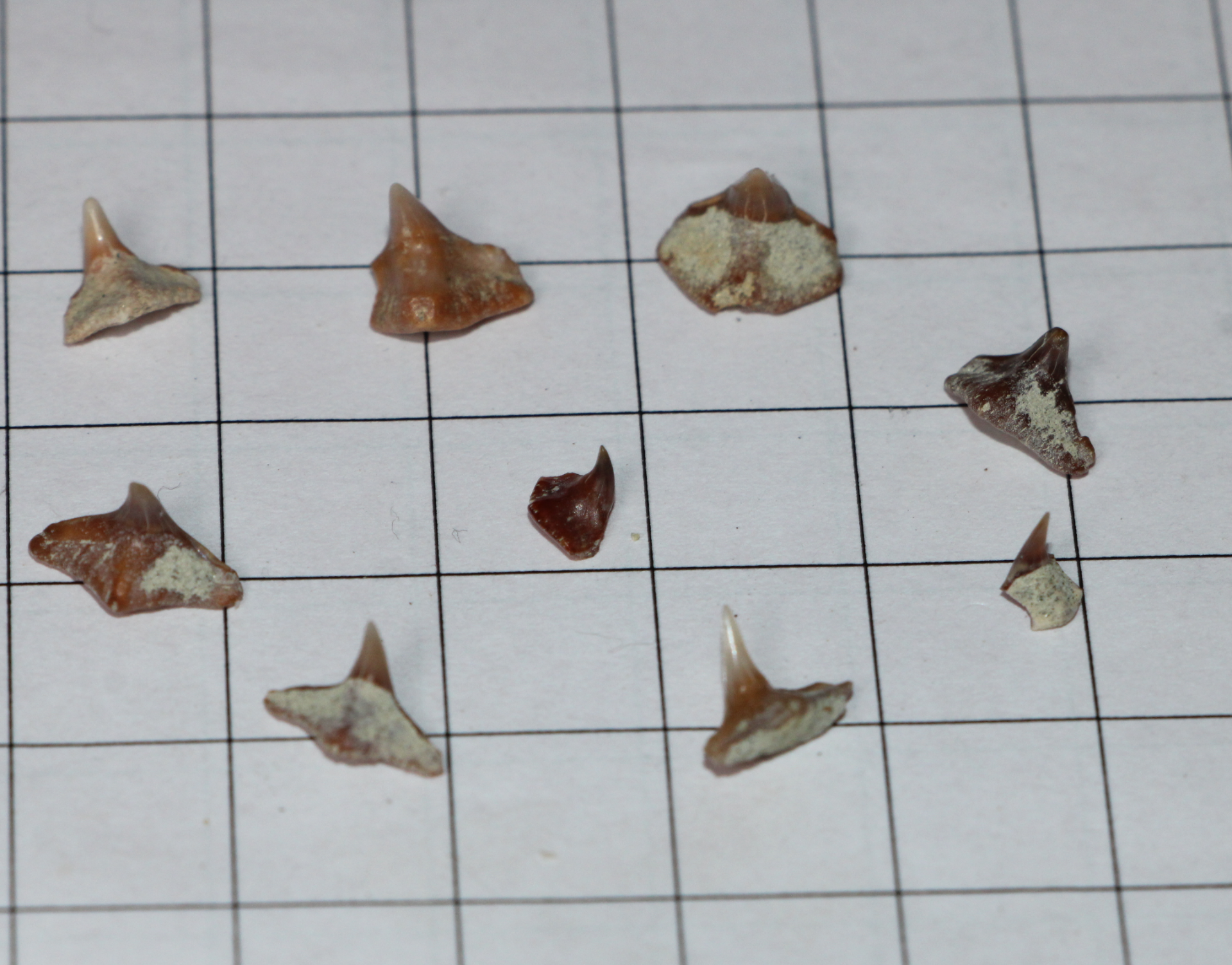 De beroemde fossielenlagen van Sharktooth Hill, ten noorden van Bakersfield, Californië, bevatten een rijke afzetting van fossiele haaientanden uit het midden-Mioceen (12 tot 15 miljoen jaar geleden). De tanden bevinden zich in slibafzettingen die af en toe op privégronden blootliggen.