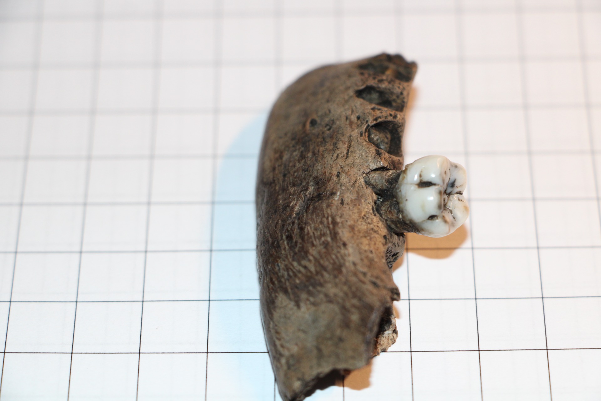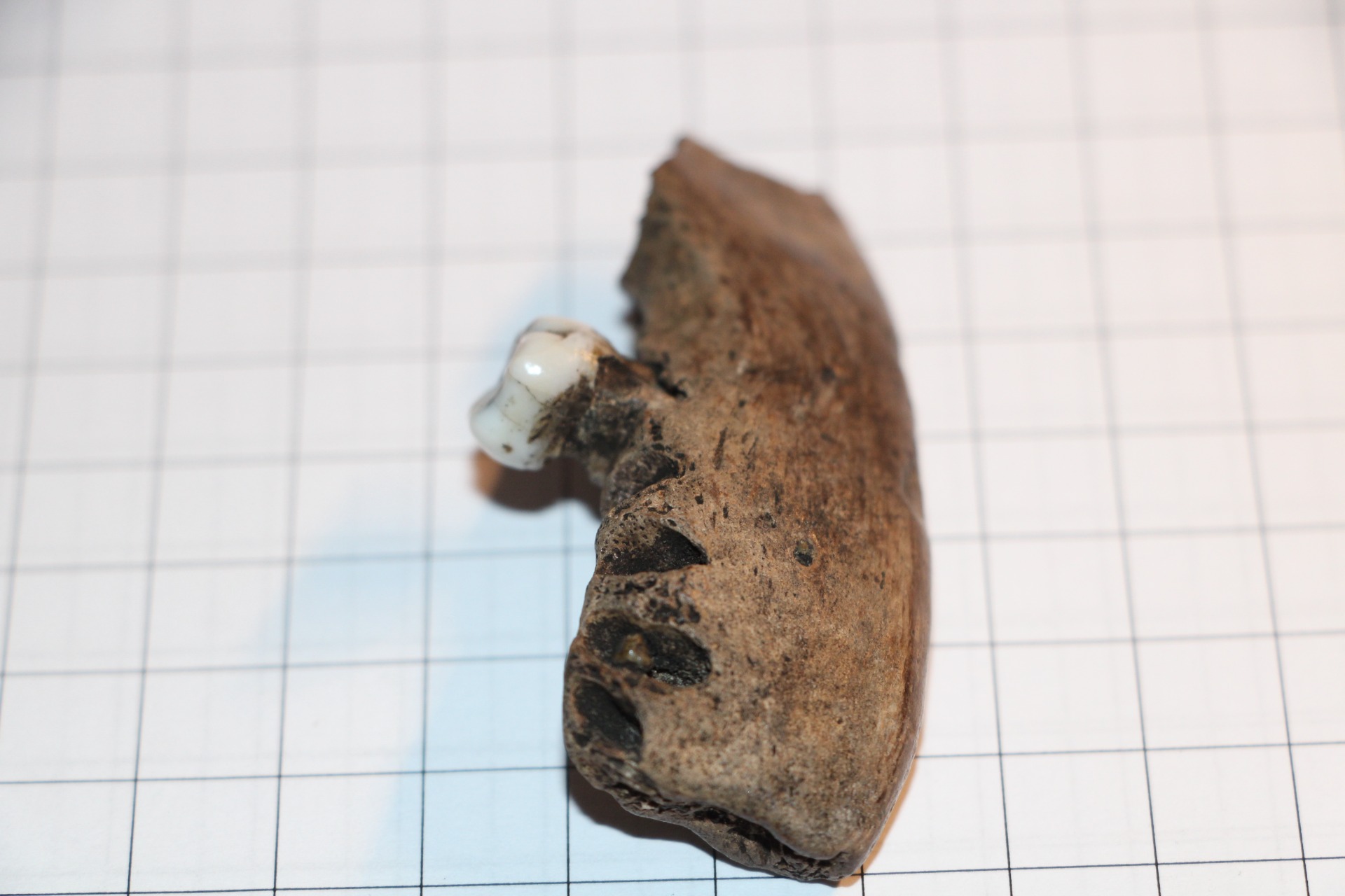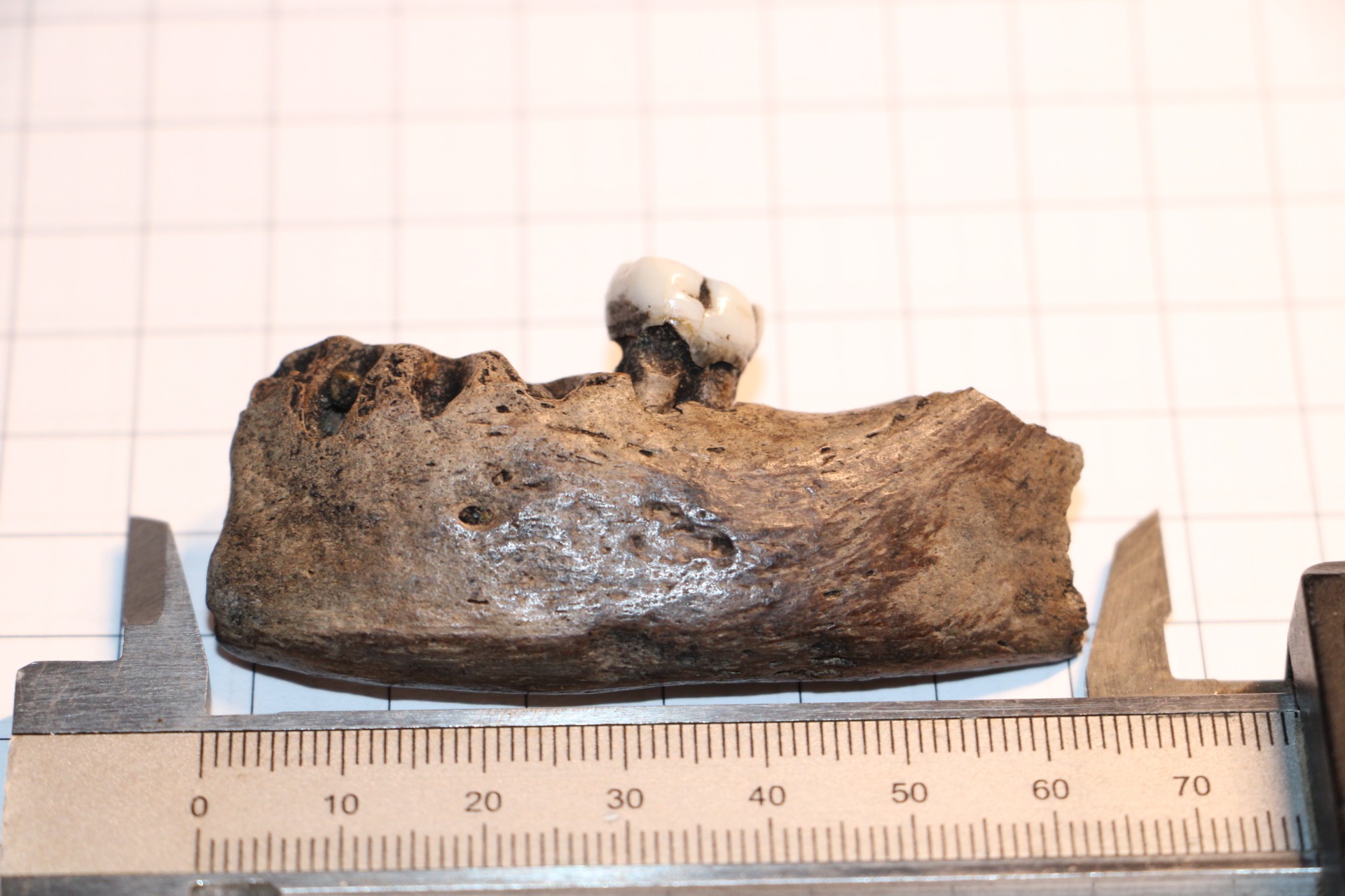 waaronder dit Schedeldakje ,Kaakfragment en 2 losse tanden .