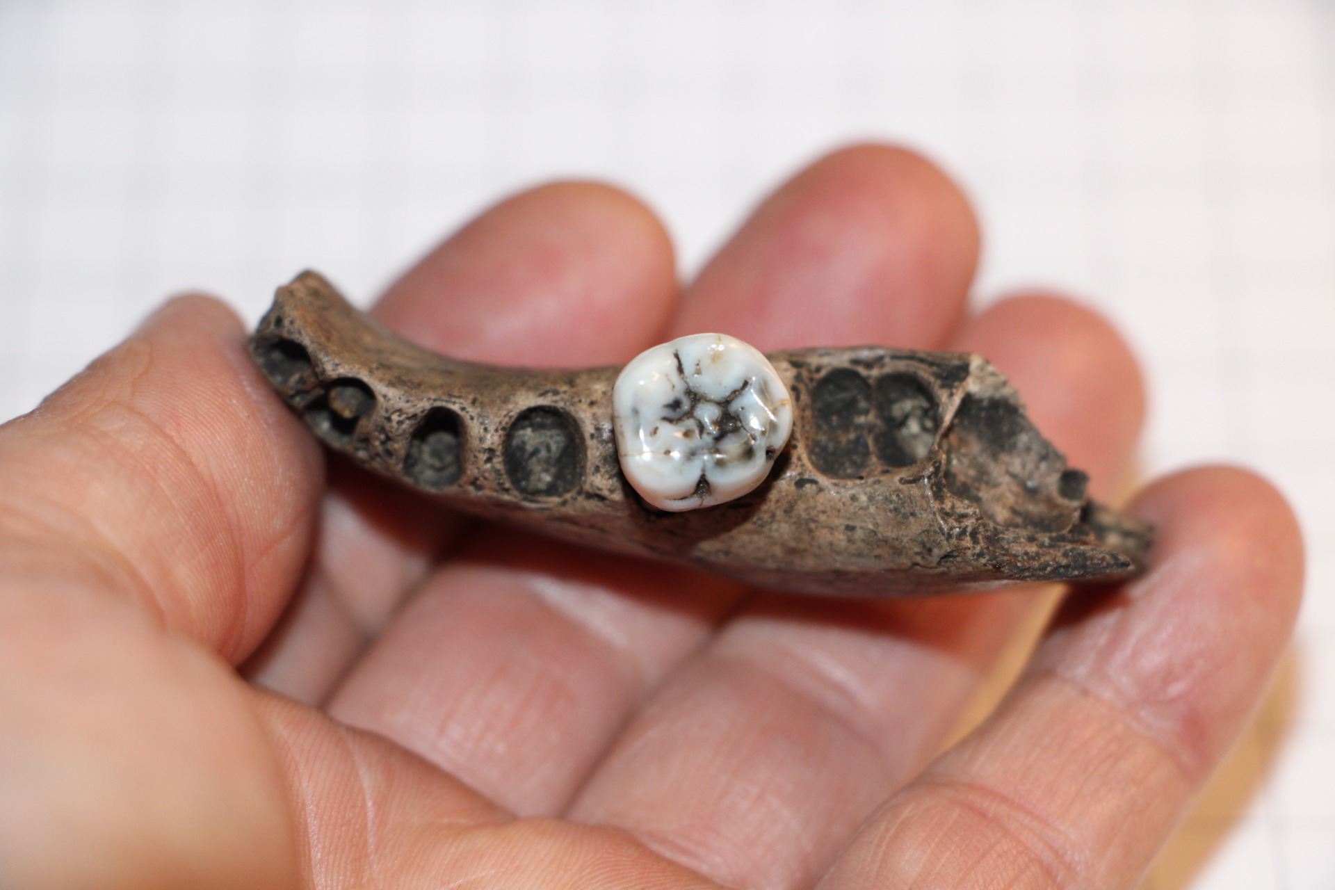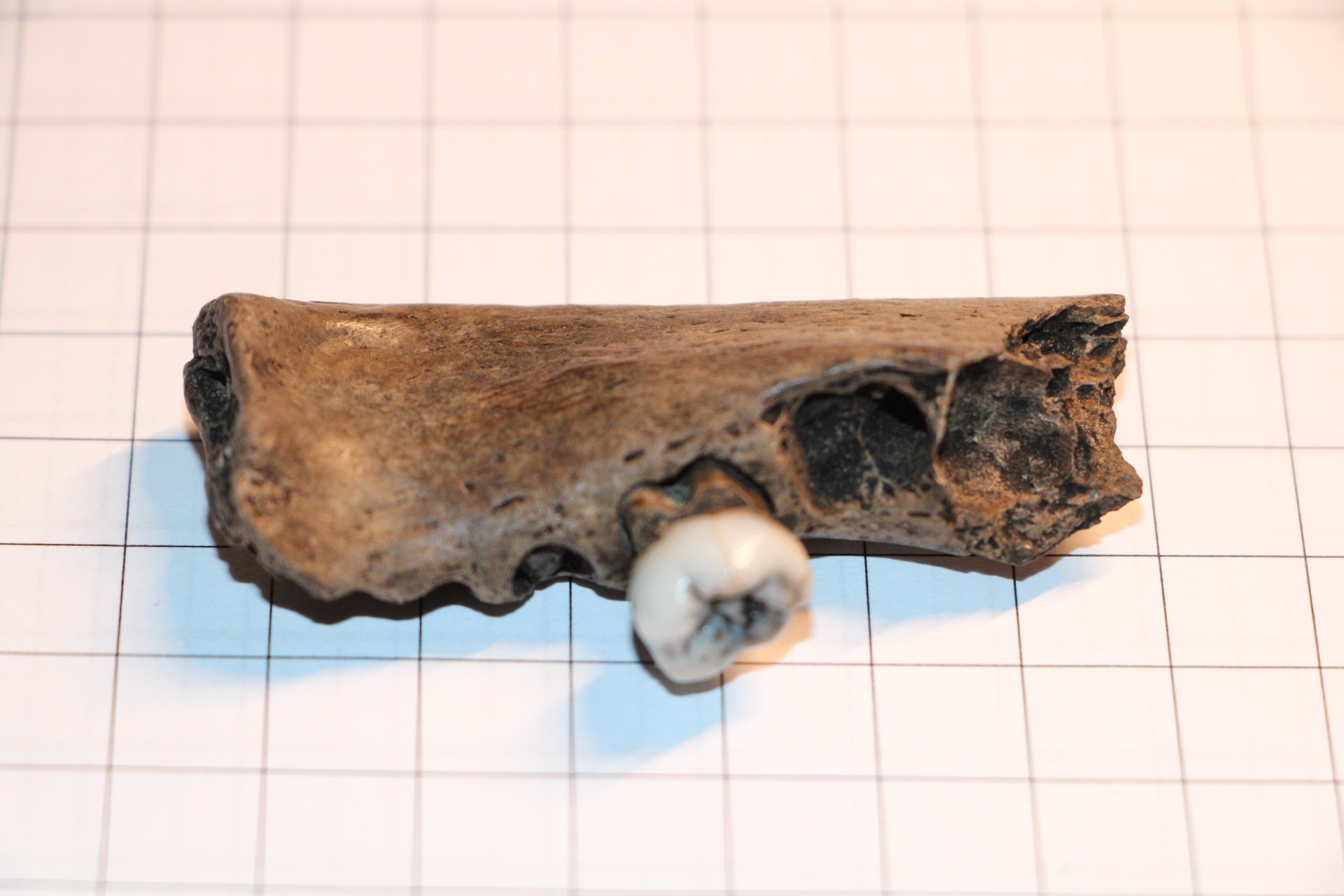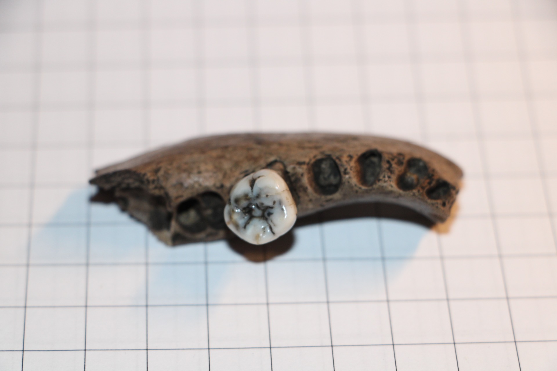 waaronder dit Schedeldakje ,Kaakfragment en 2 losse tanden .