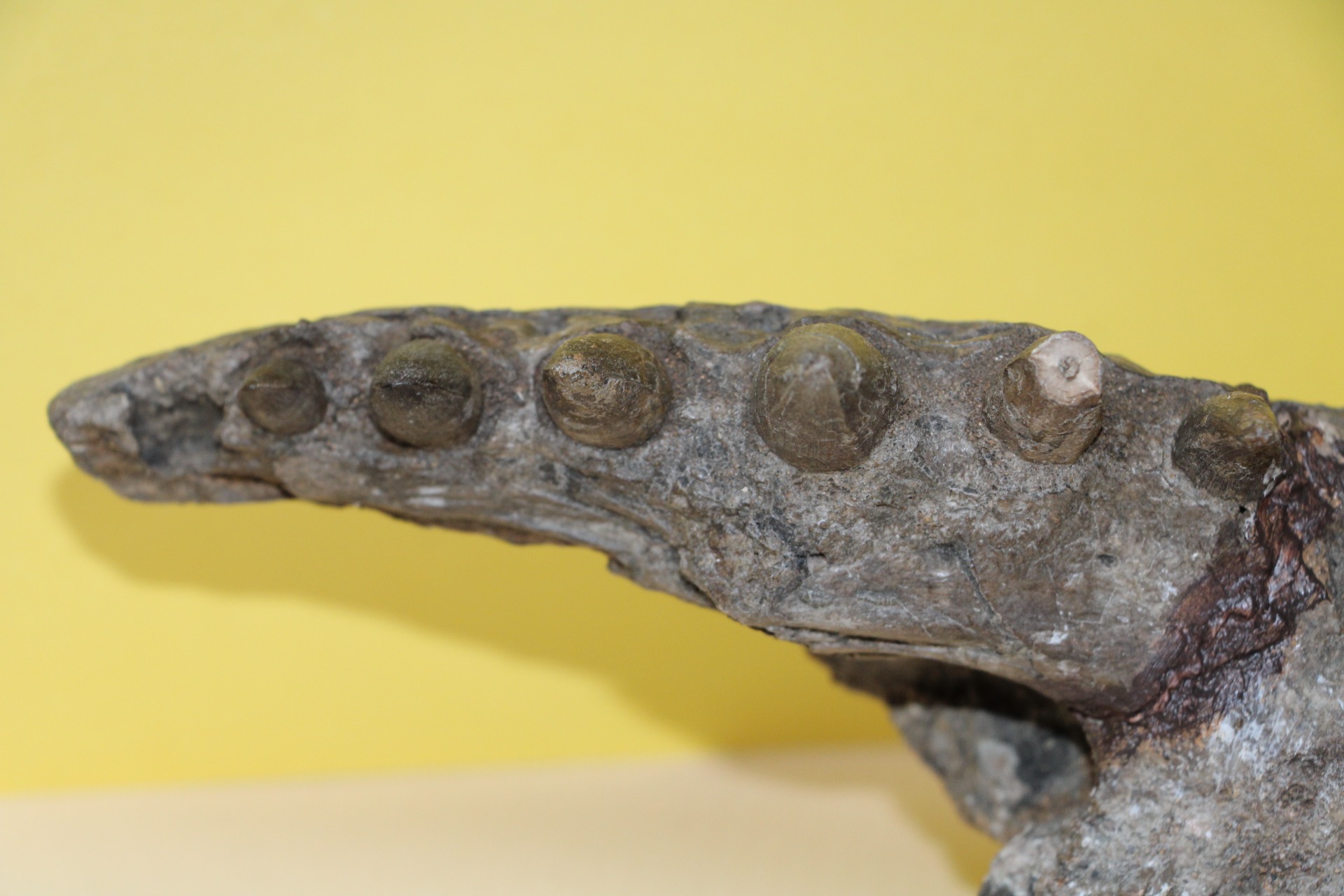 Dit indrukwekkende fossiele kaakdeel, is van een dier dat sinds prehistorische tijden weinig is veranderd.