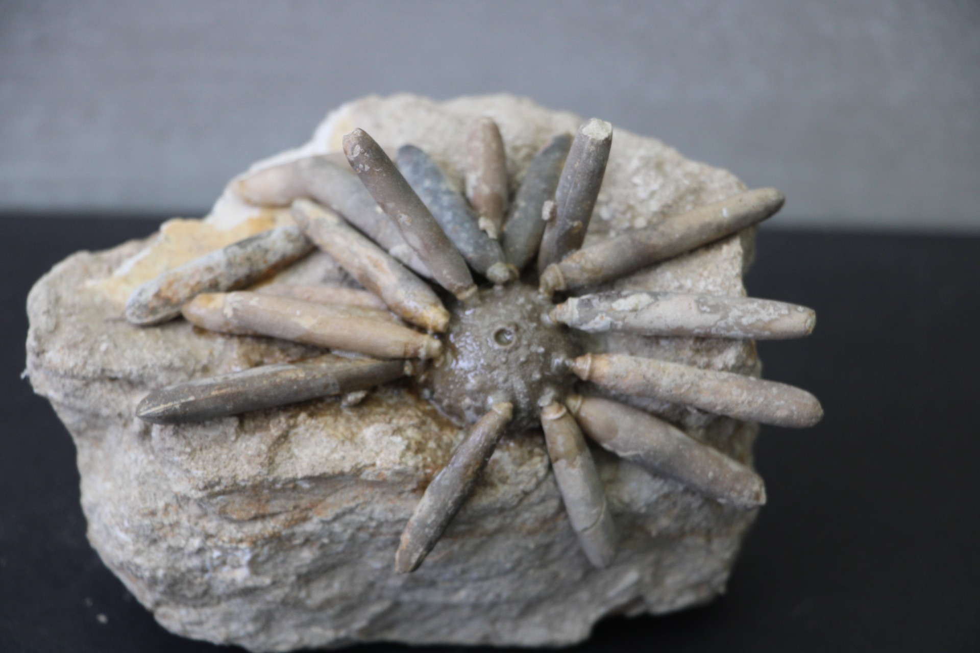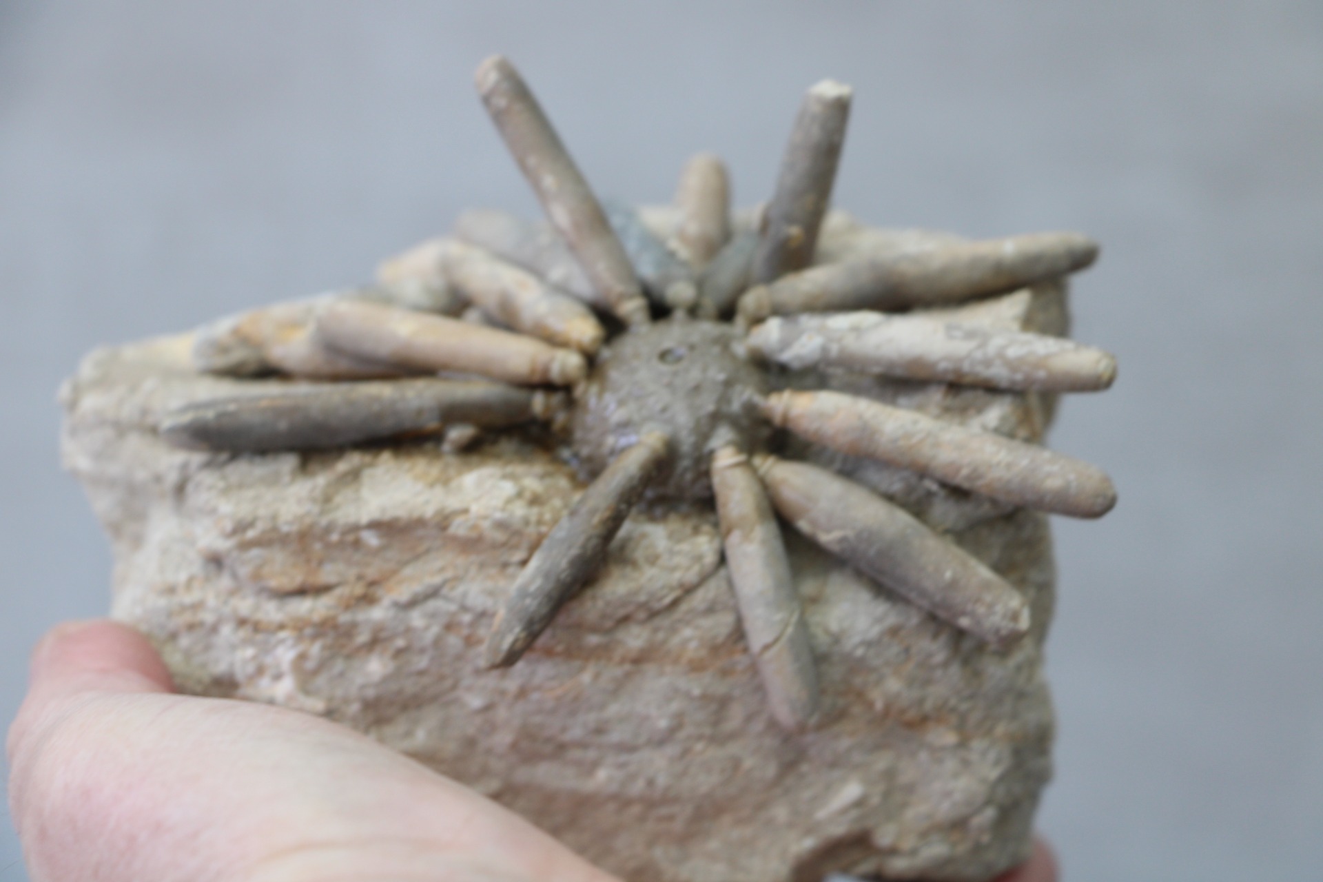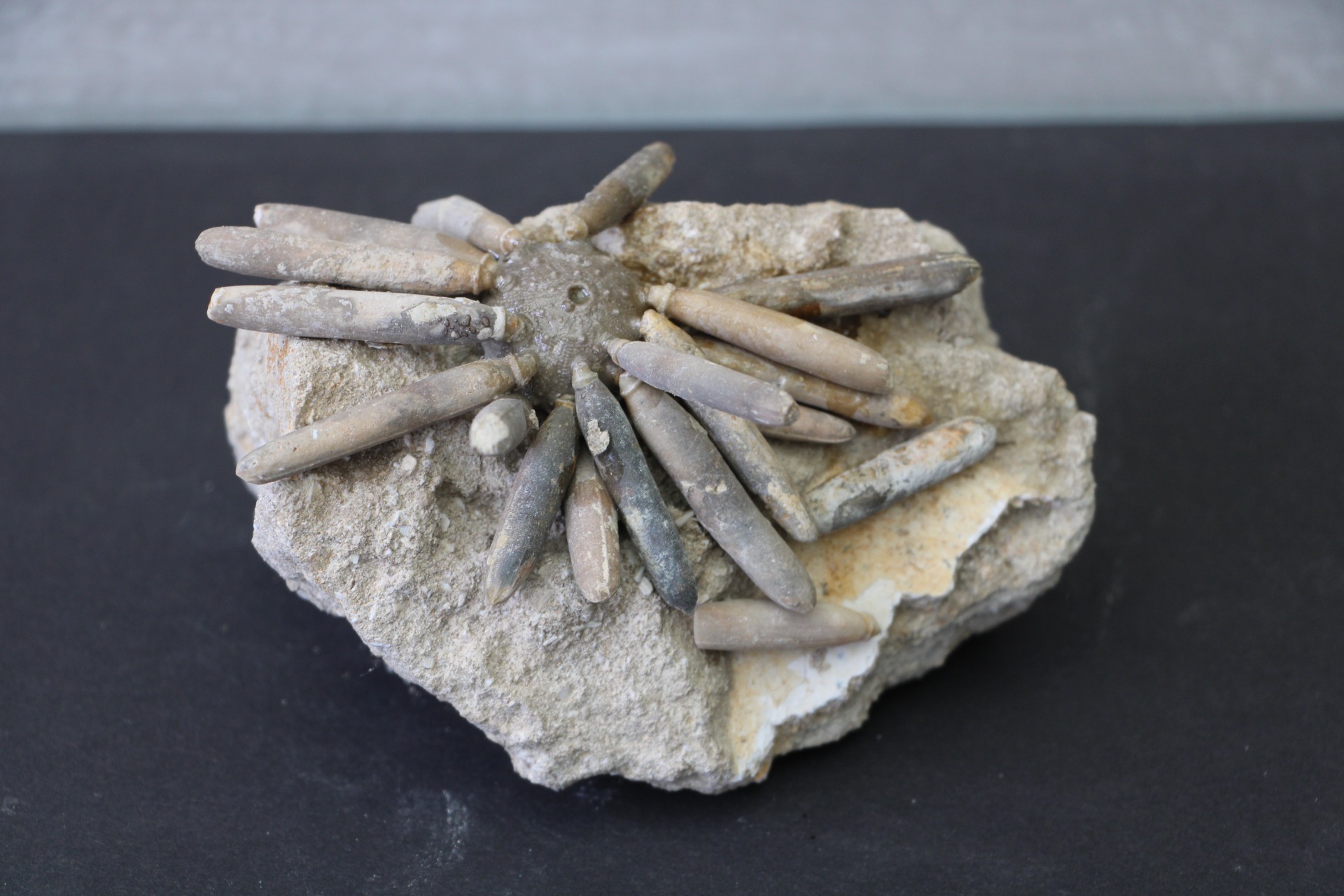 Het is een zeer esthetisch aantrekkelijk en indrukwekkend fossiel, en wordt zelden nog aangeboden met de oorspronkelijke stekels erbij.
