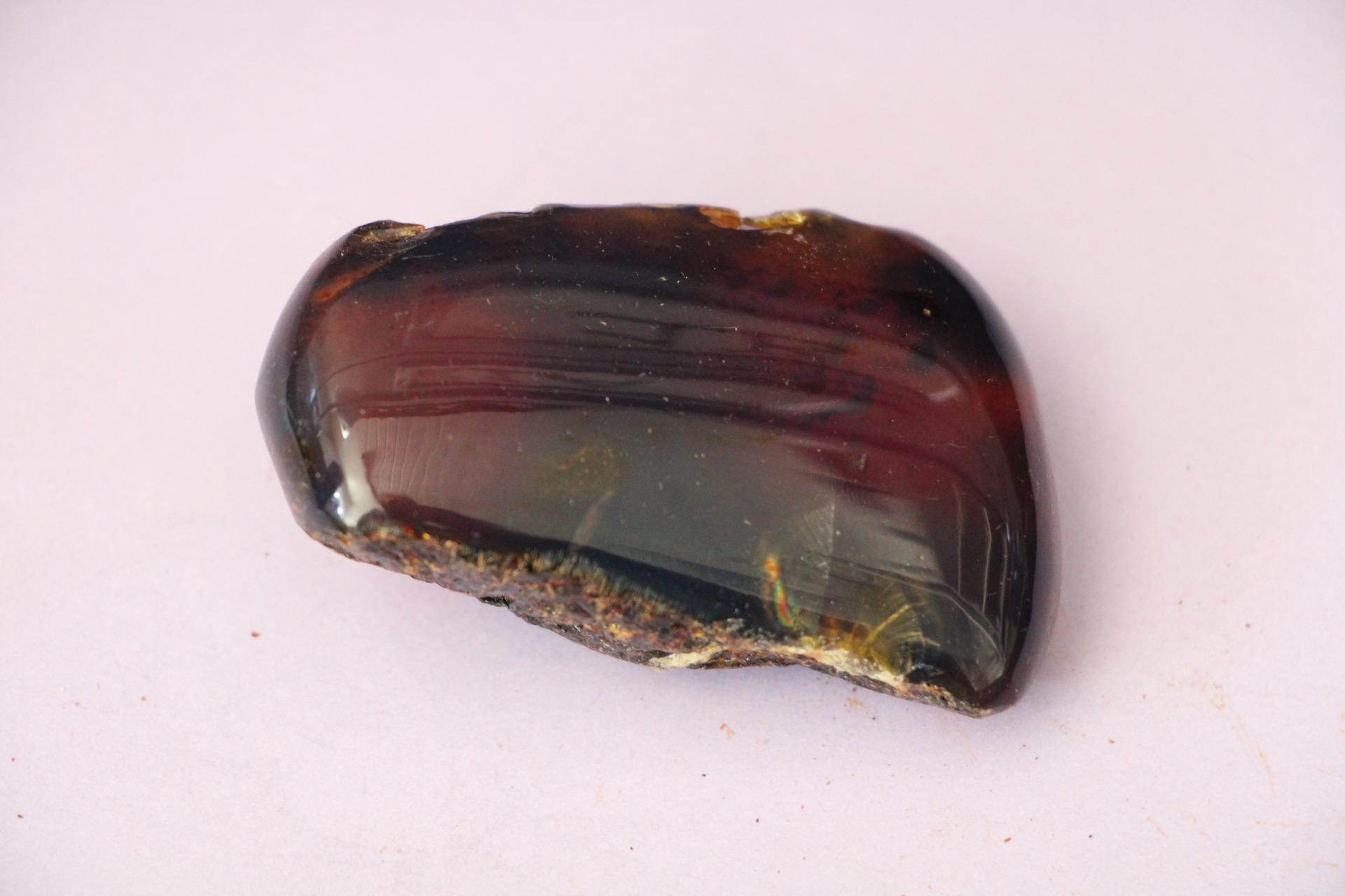 De barnsteen zelf is oranjerood van kleur en zorgt voor uitstekend polijstmateriaal.