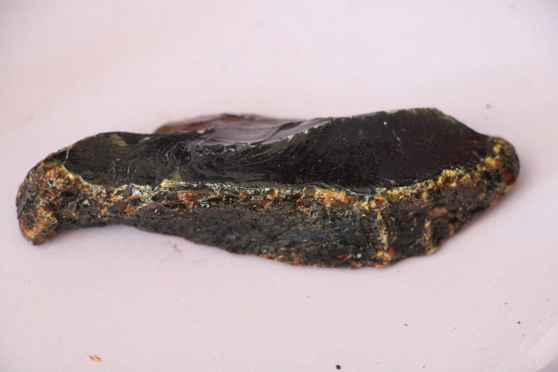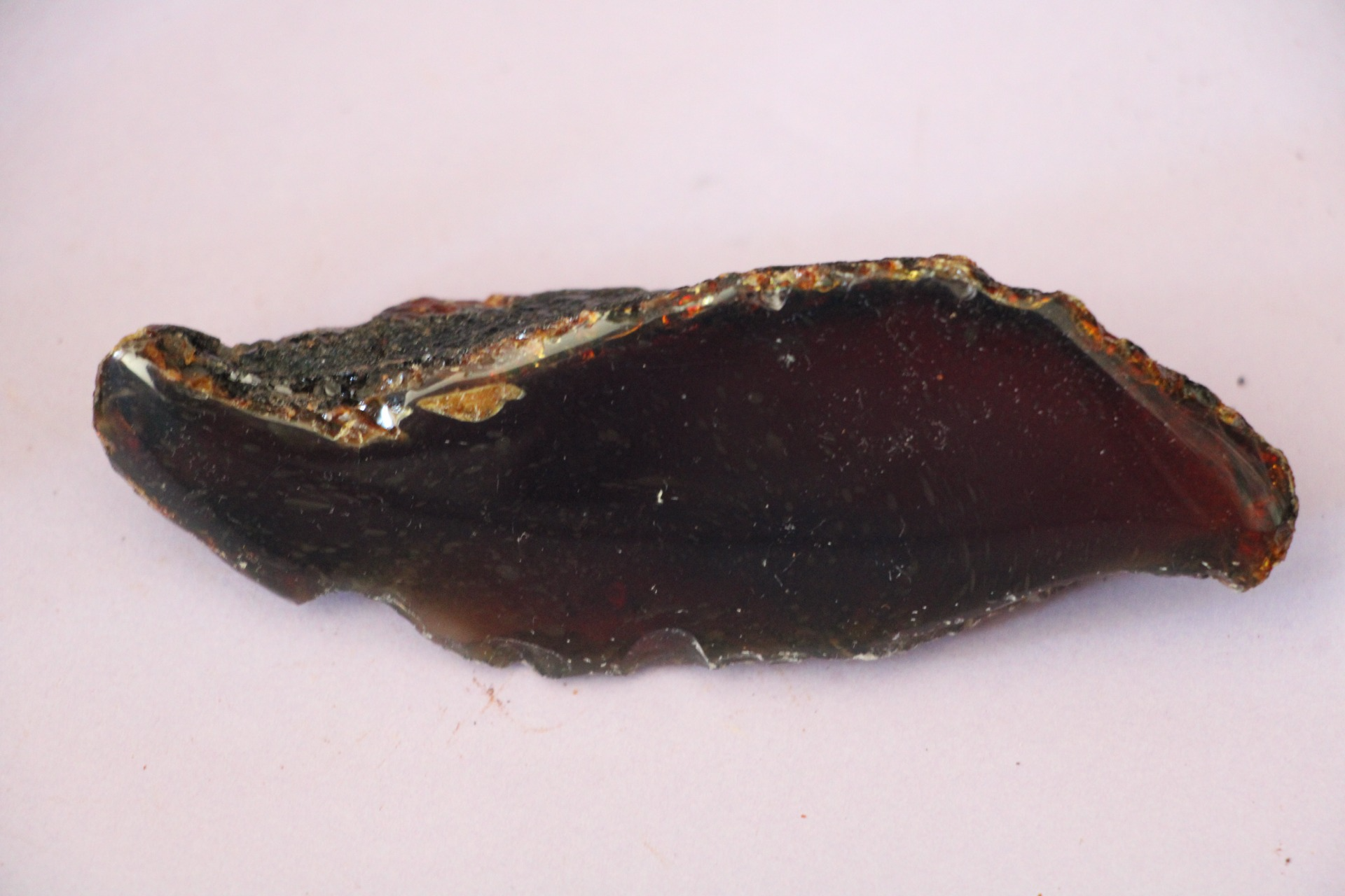 De barnsteen zelf is oranjerood van kleur en zorgt voor uitstekend polijstmateriaal.