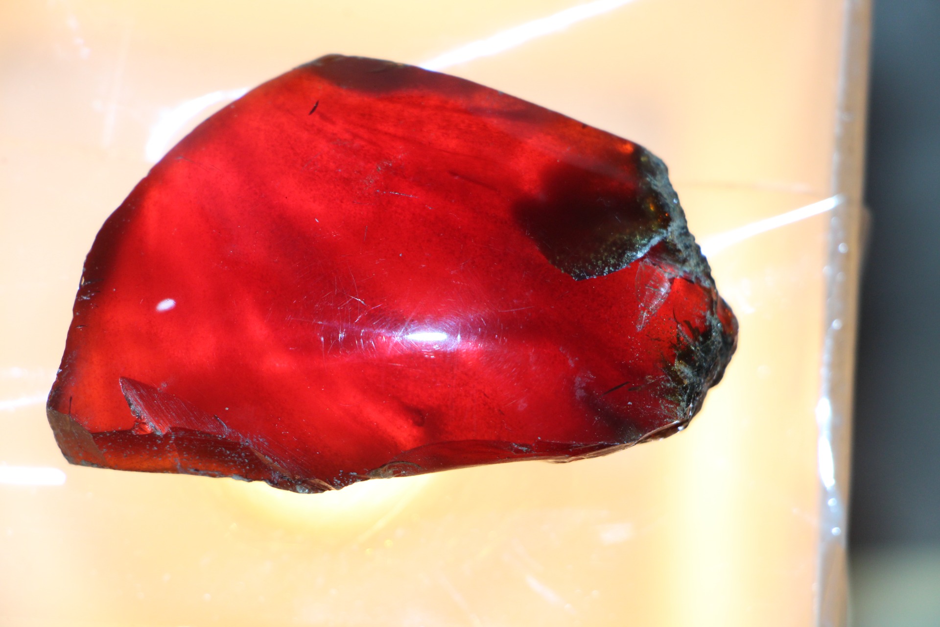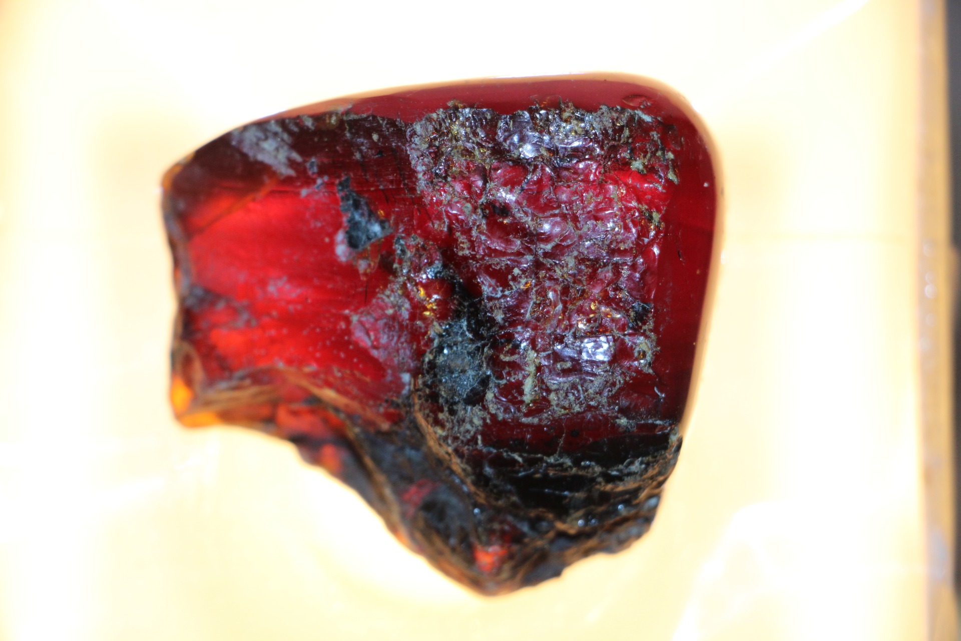 De barnsteen zelf is oranje/rood/geelachtig van kleur en zorgt voor uitstekend polijstmateriaal.