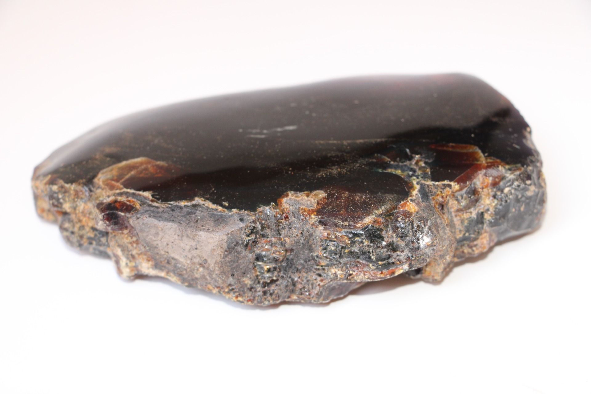 De barnsteen zelf is oranje/rood/geelachtig van kleur en zorgt voor uitstekend polijstmateriaal.