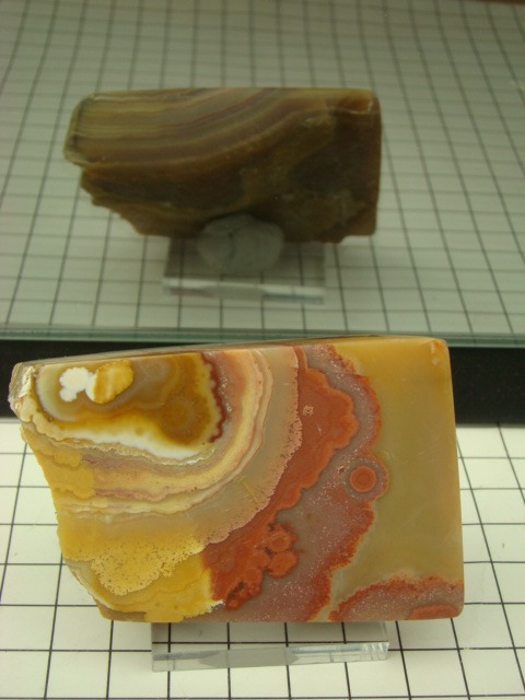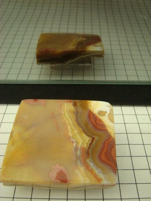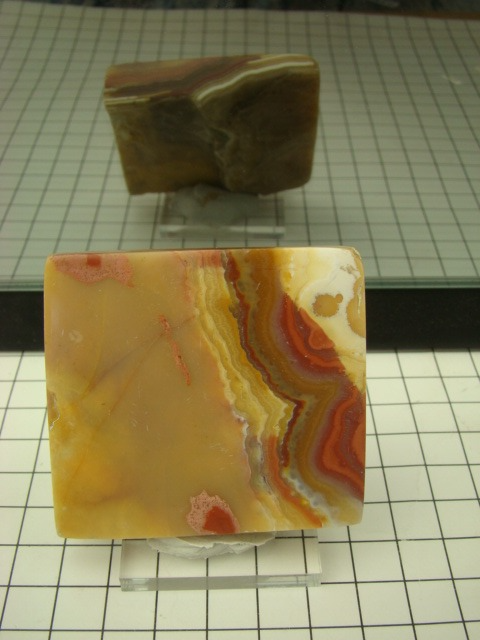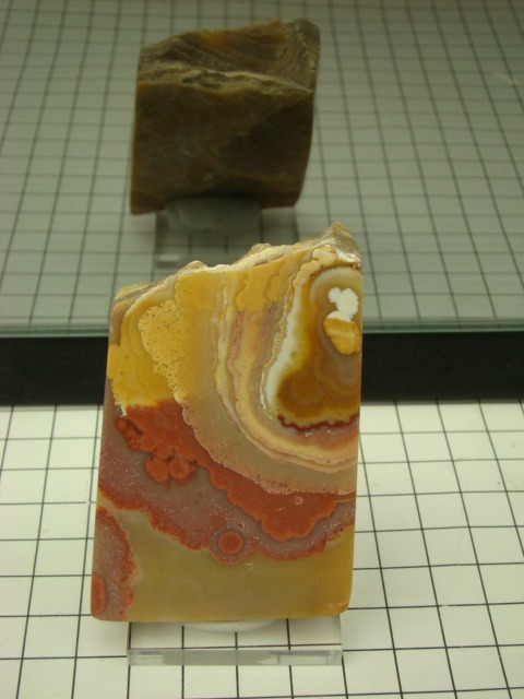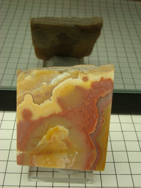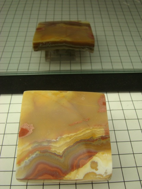 Bumble Bee Stone (BBS) is an attractive bright yellow-to-orange and black patterned gem from West Java, Indonesia. Production has been ongoing since 2003, yielding an estimated 150 tons of lapidary material.