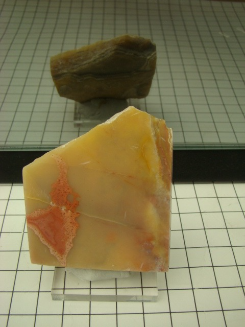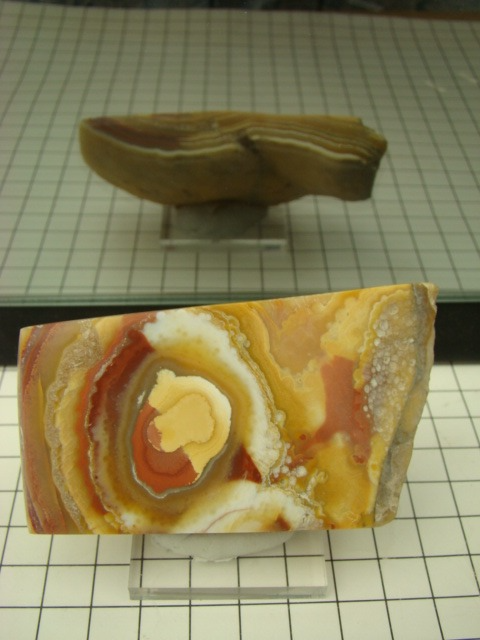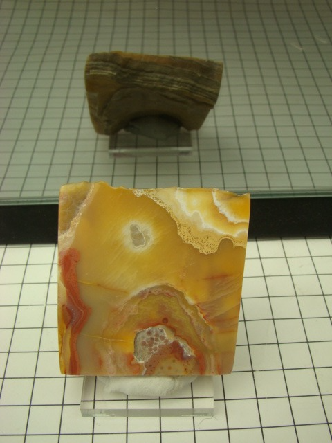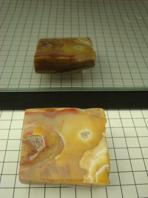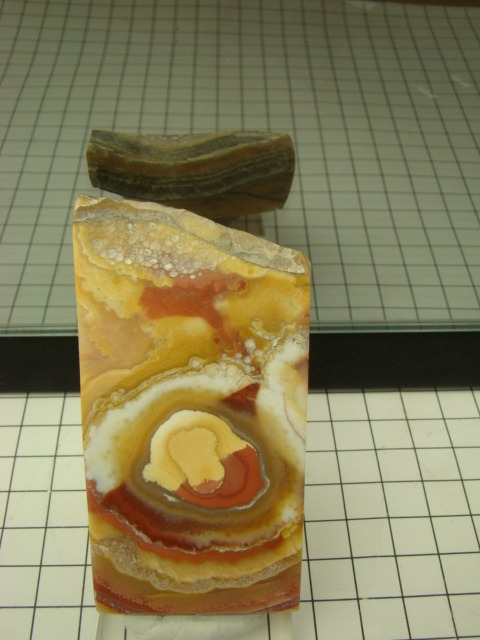Bumble Bee Stone (BBS) is an attractive bright yellow-to-orange and black patterned gem from West Java, Indonesia. Production has been ongoing since 2003, yielding an estimated 150 tons of lapidary material.