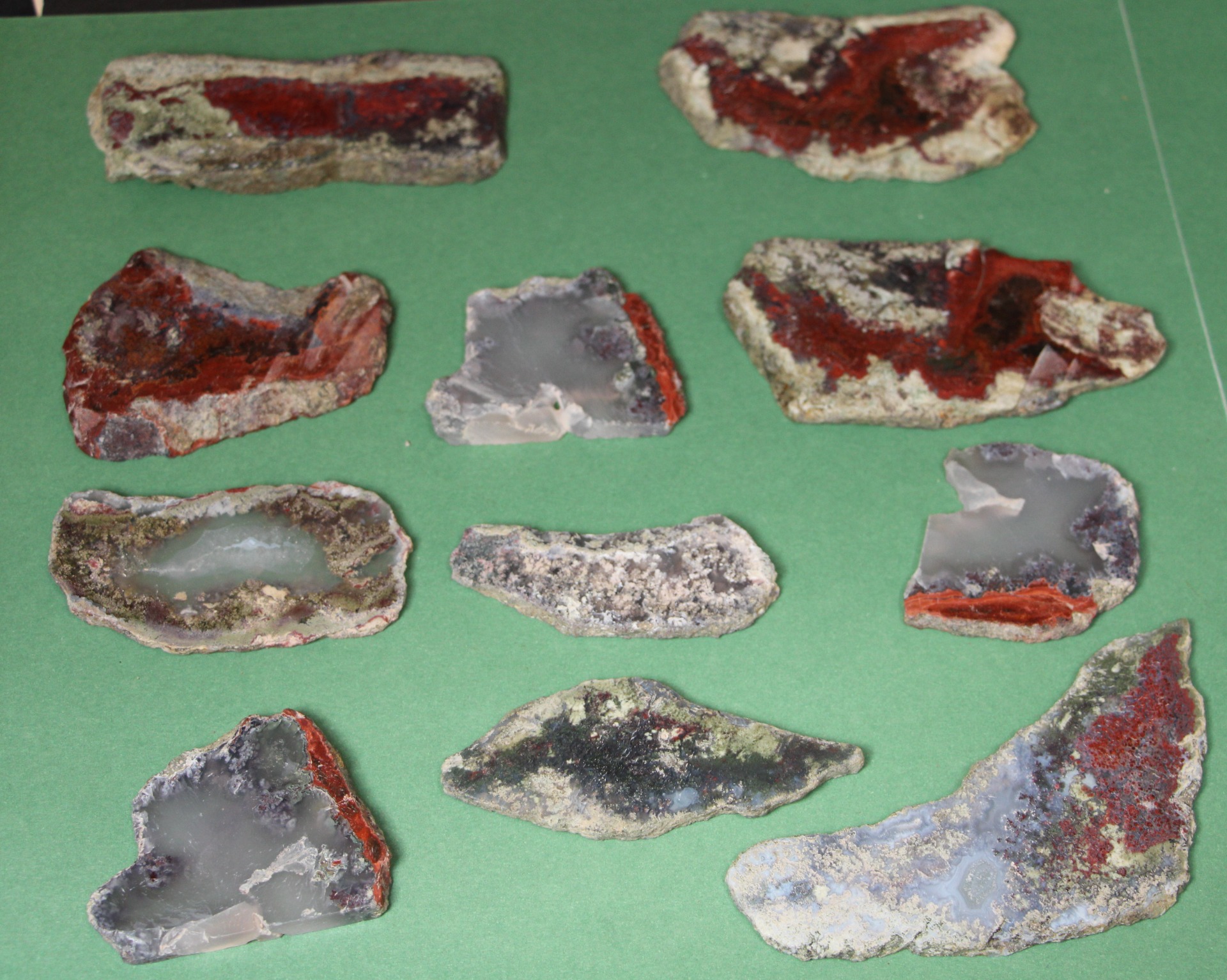 Deze handmatig vervaardigde 2- zijden gepolijste Red Moss agaten zijn een lust voor het oog om te bekijken onder een lichtbron en met een loep..
