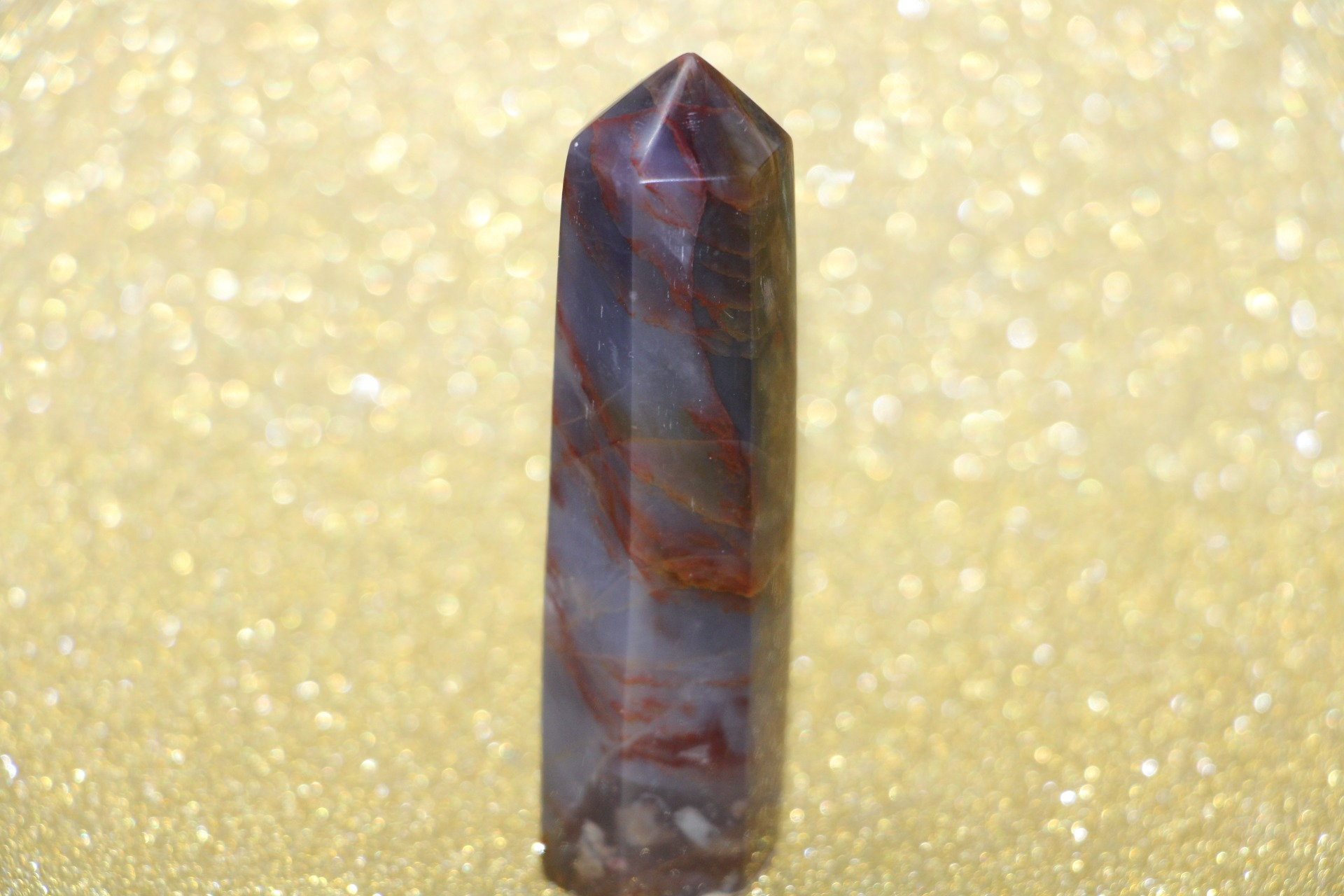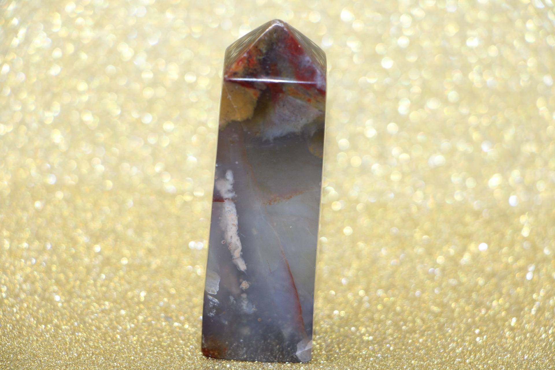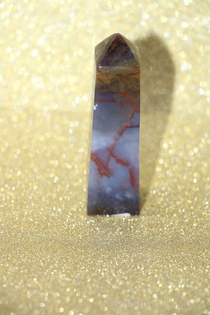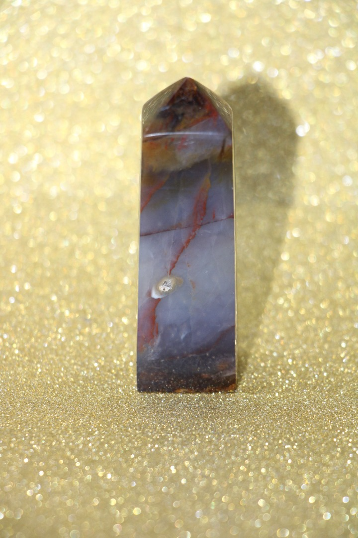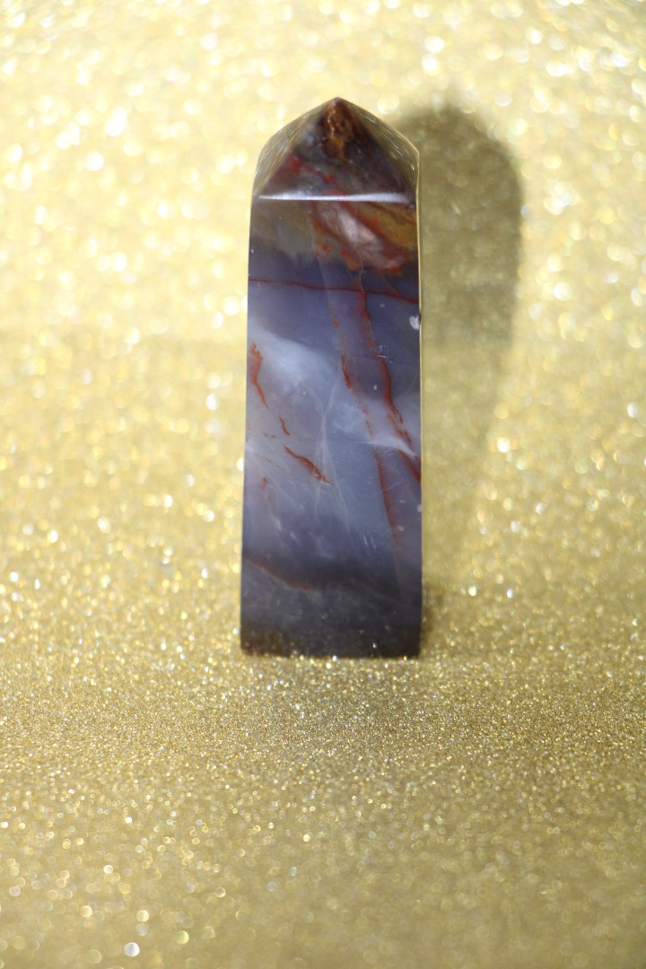 is een decoratieve en metafysische steen die in de vorm van een obelisk is gesneden, gewaardeerd om zijn schoonheid, aardende energie en mogelijke spirituele eigenschappen.