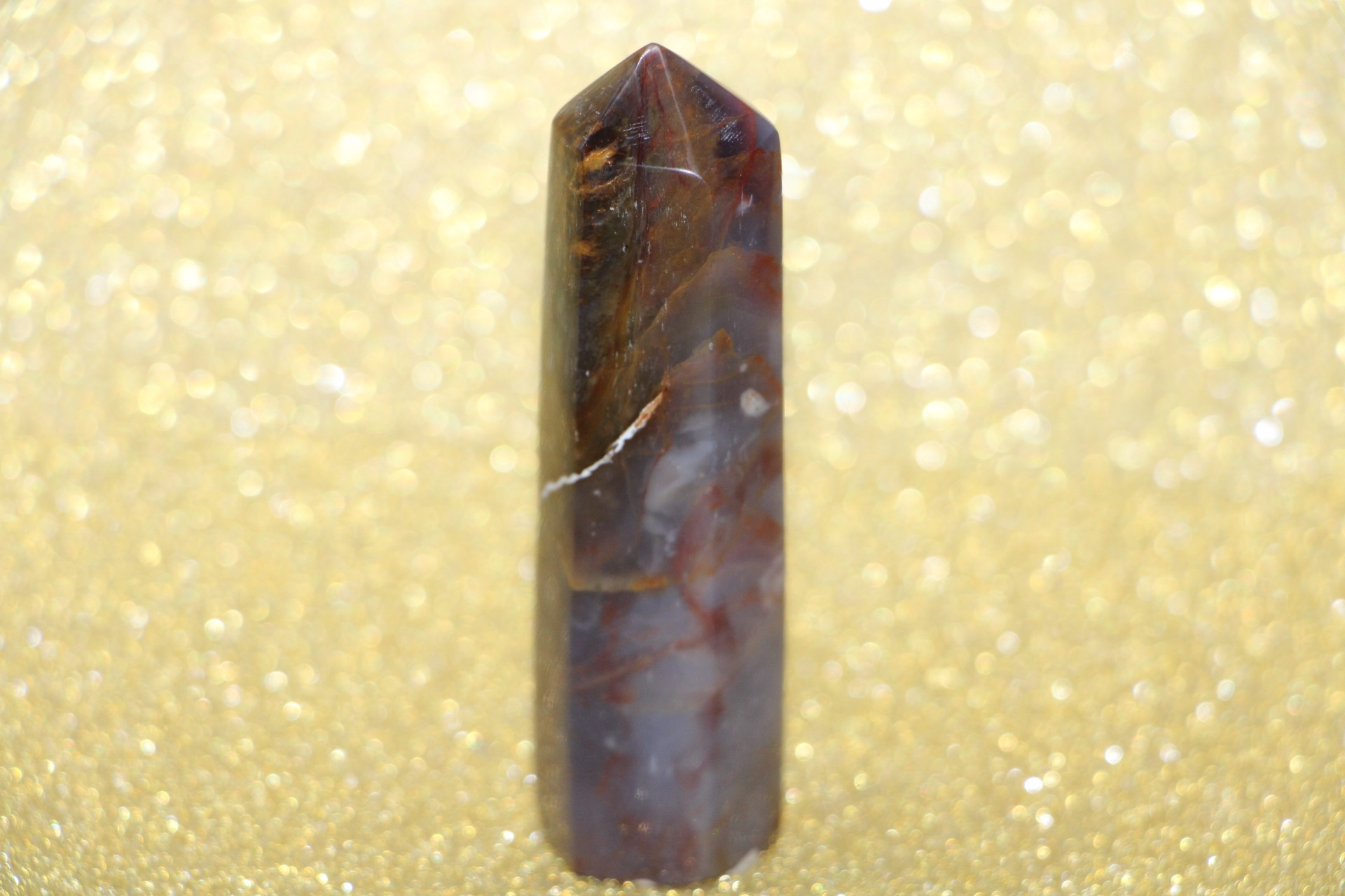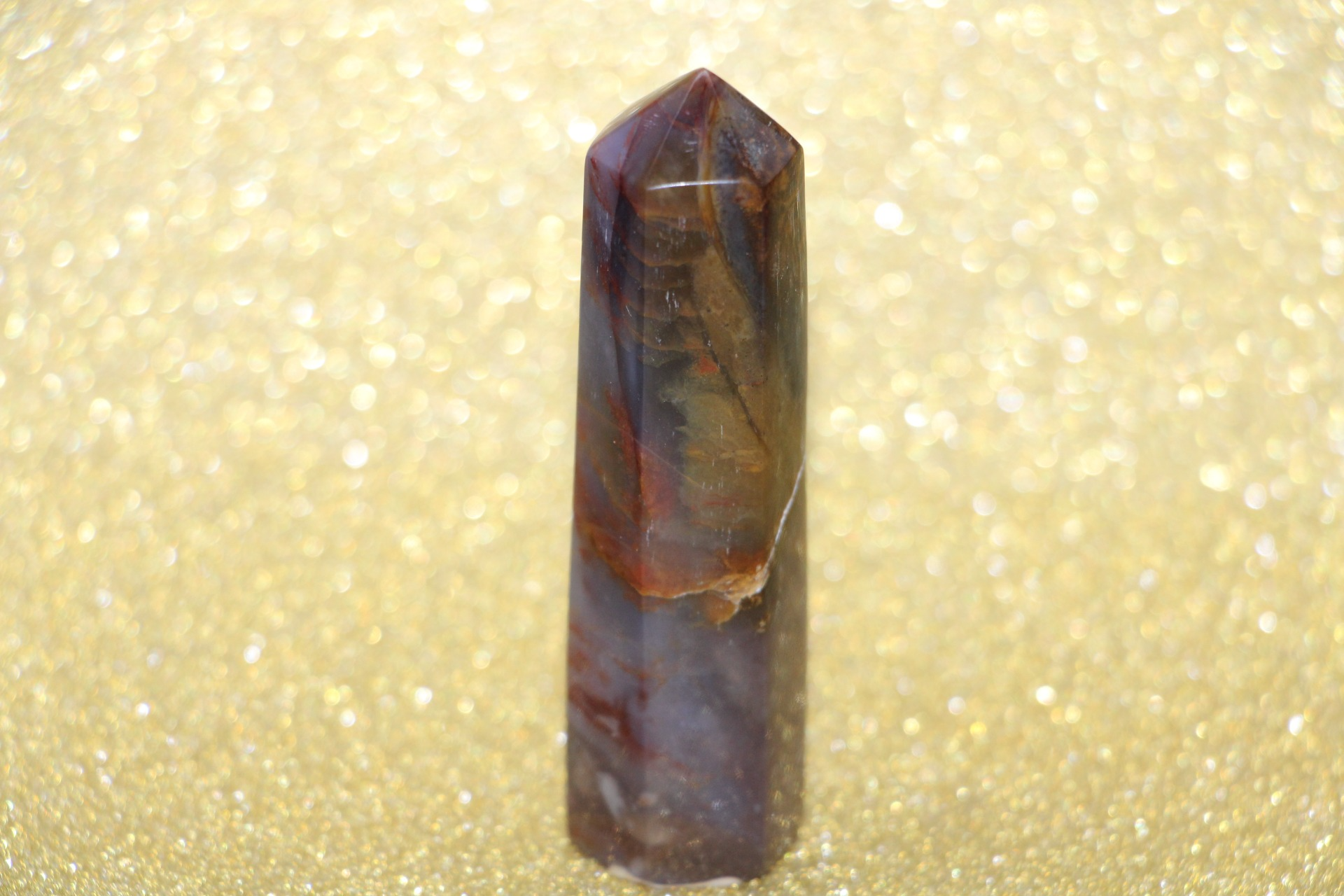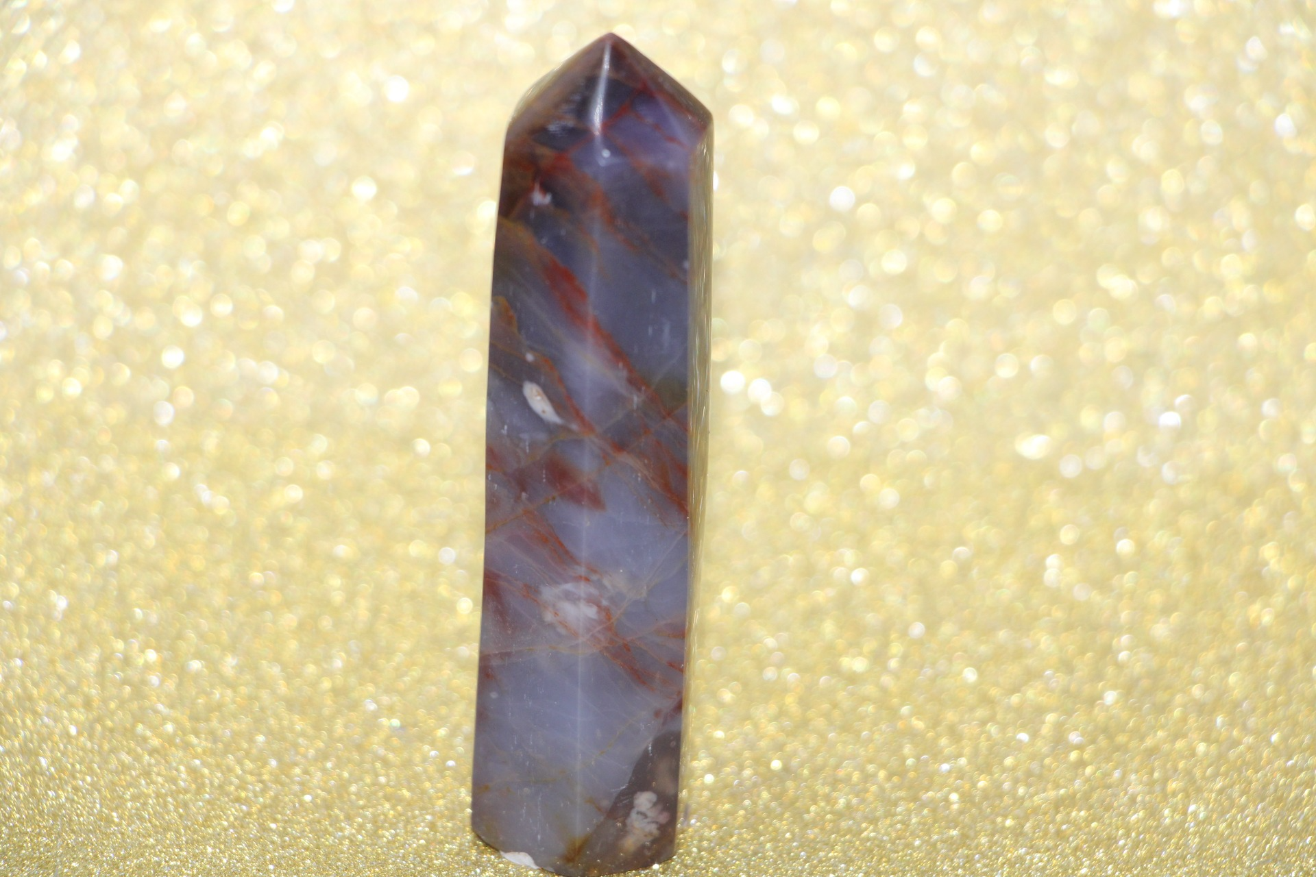 is een decoratieve en metafysische steen die in de vorm van een obelisk is gesneden, gewaardeerd om zijn schoonheid, aardende energie en mogelijke spirituele eigenschappen.