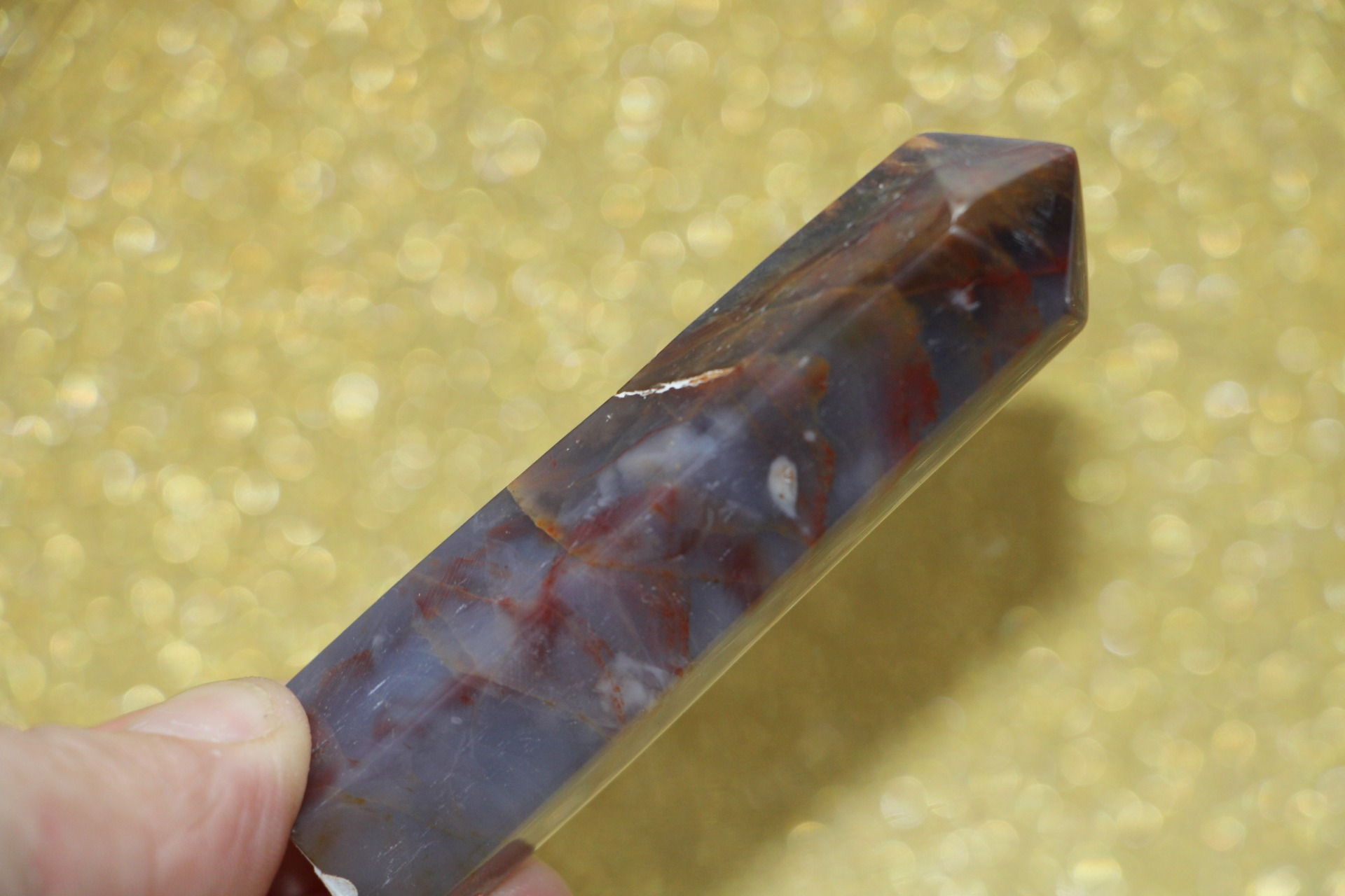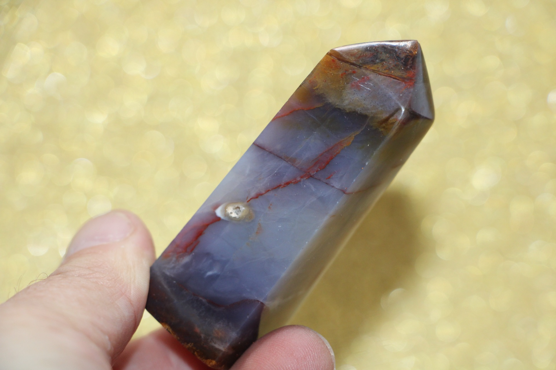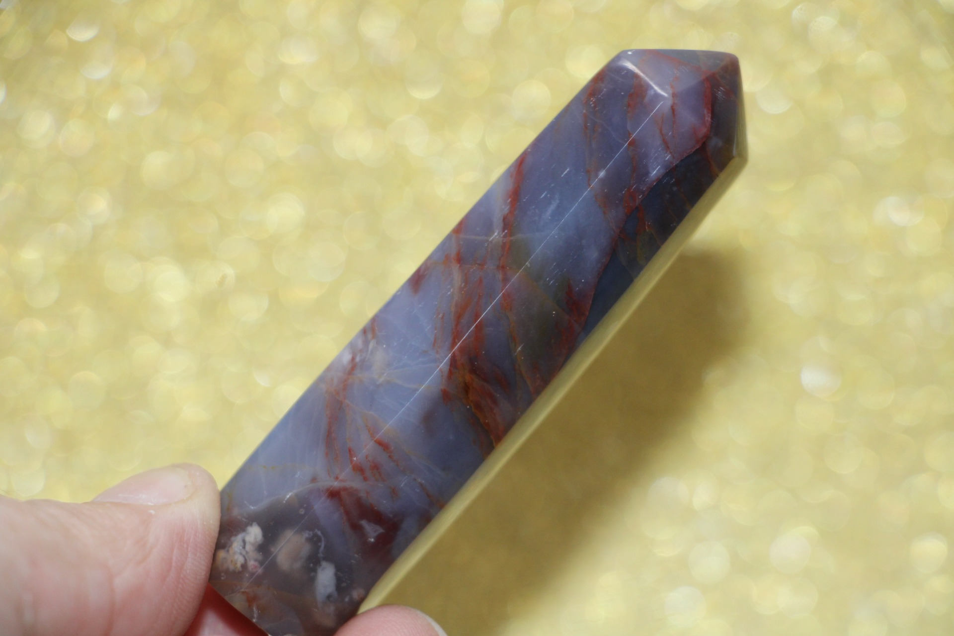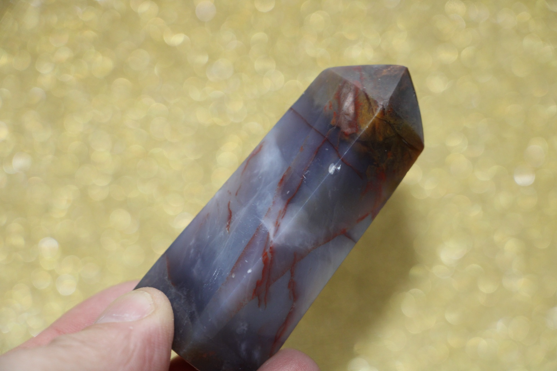 is een decoratieve en metafysische steen die in de vorm van een obelisk is gesneden, gewaardeerd om zijn schoonheid, aardende energie en mogelijke spirituele eigenschappen.