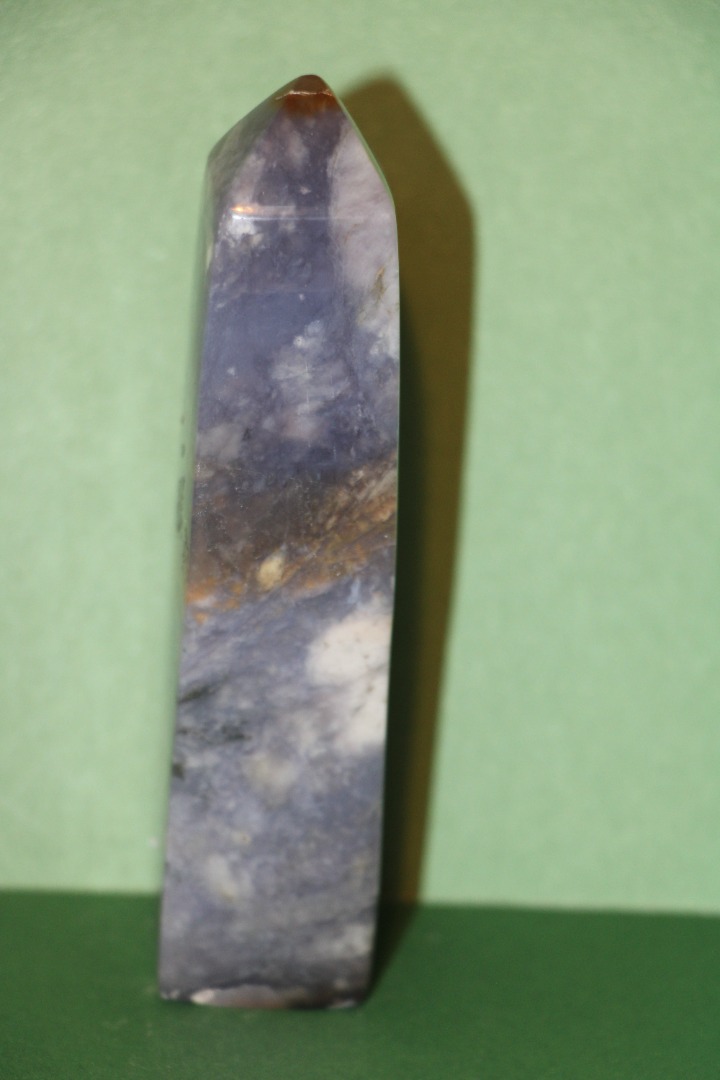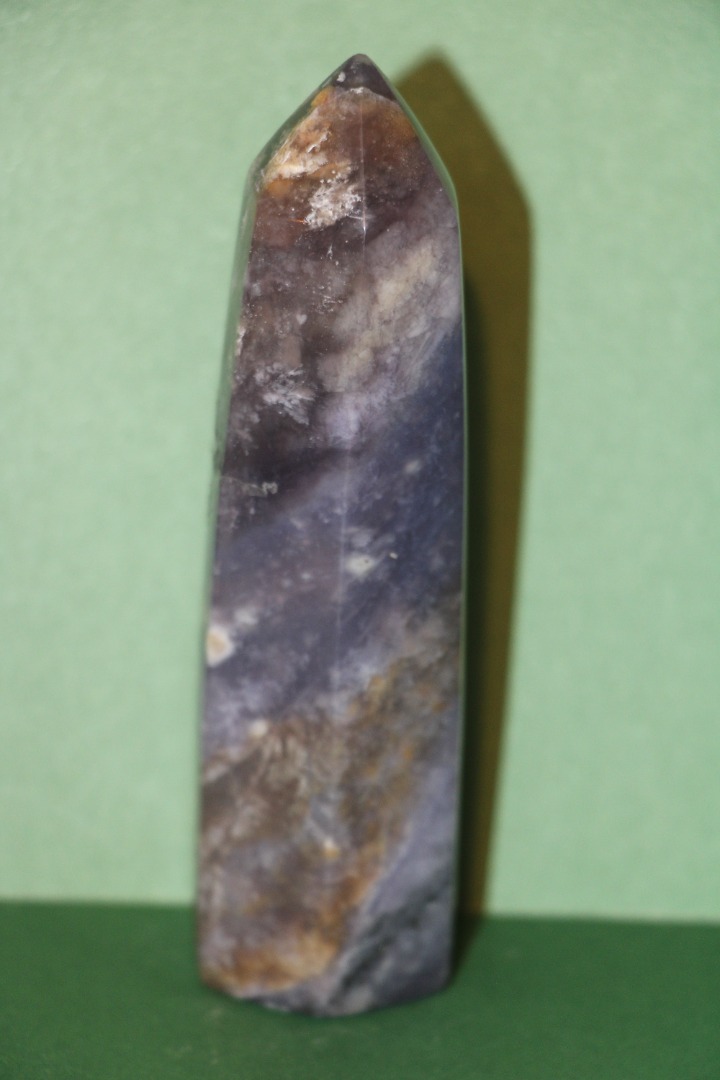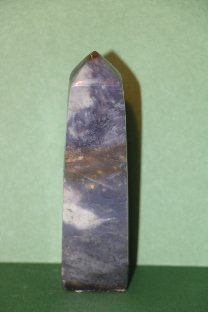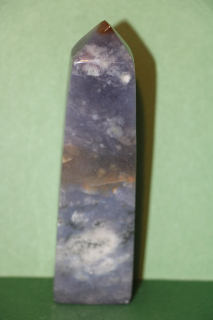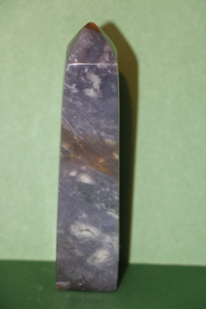 is een decoratieve en metafysische steen die in de vorm van een obelisk is gesneden, gewaardeerd om zijn schoonheid, aardende energie en mogelijke spirituele eigenschappen.