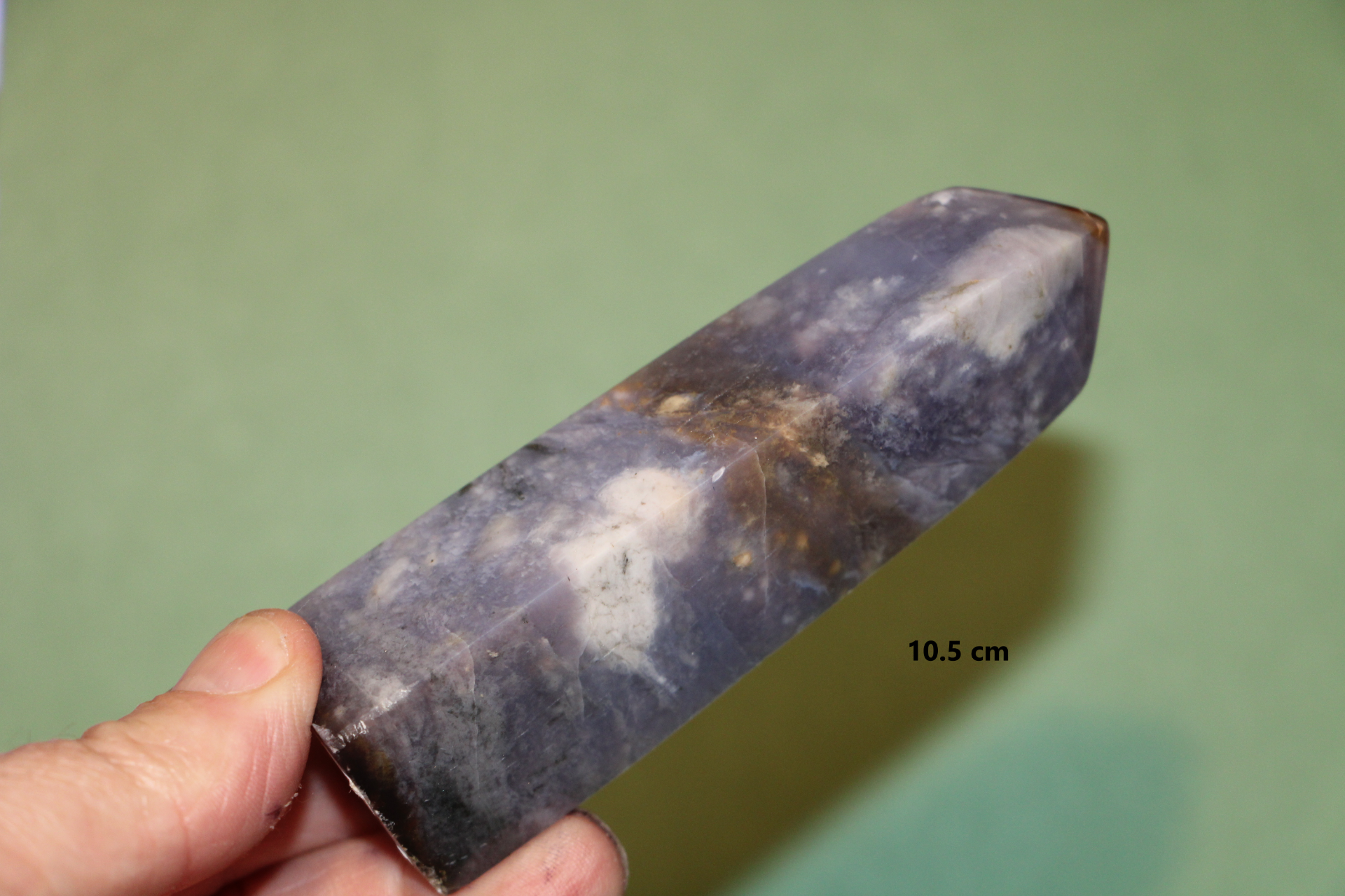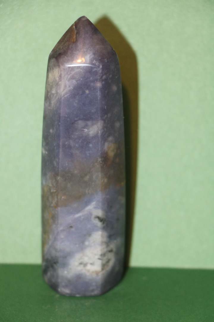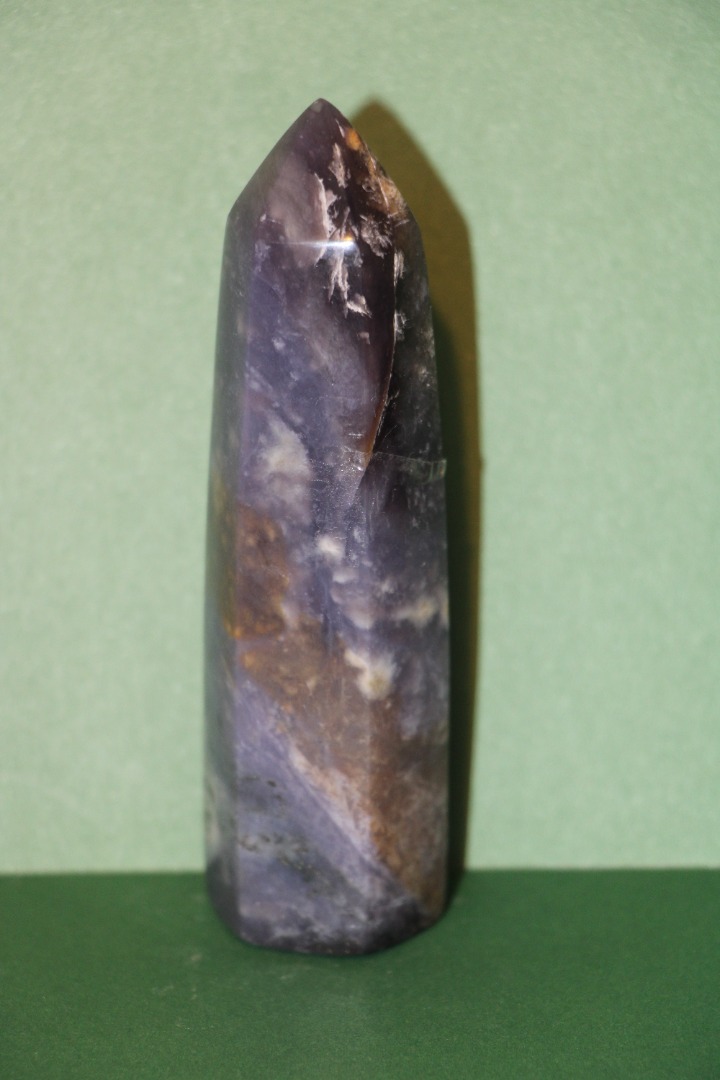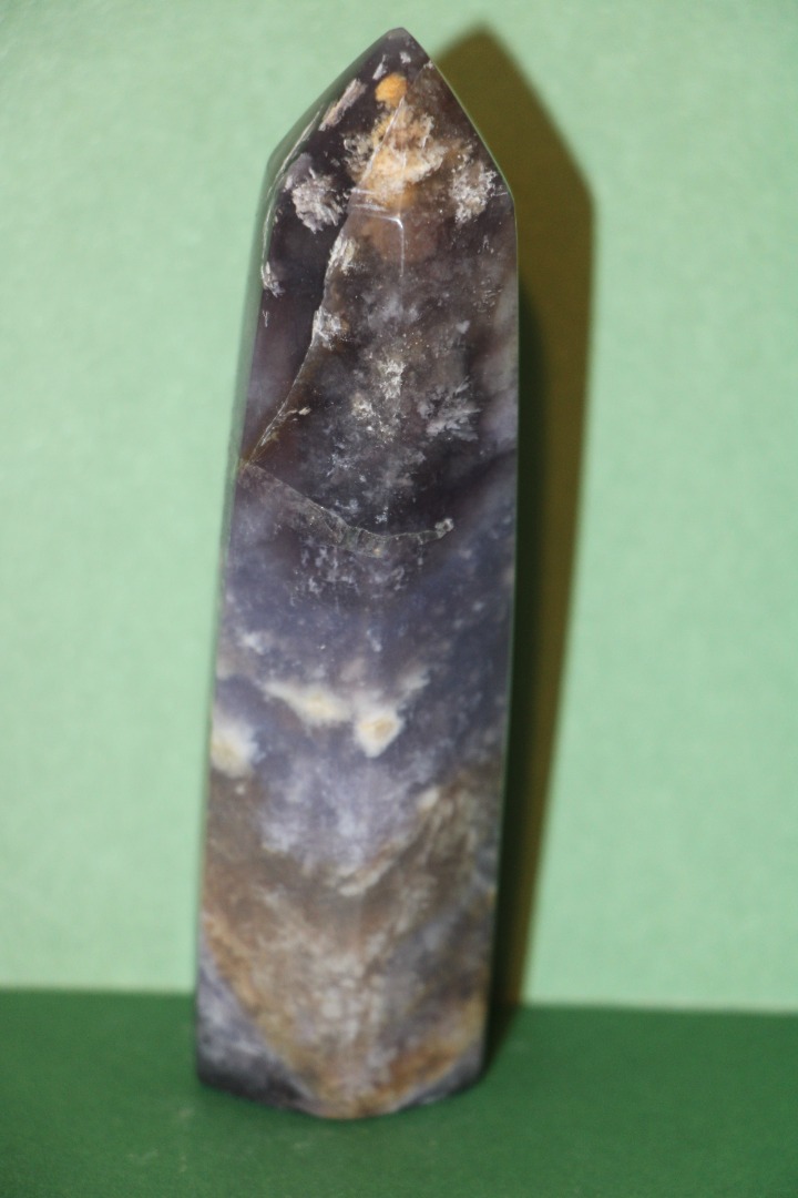is een decoratieve en metafysische steen die in de vorm van een obelisk is gesneden, gewaardeerd om zijn schoonheid, aardende energie en mogelijke spirituele eigenschappen.