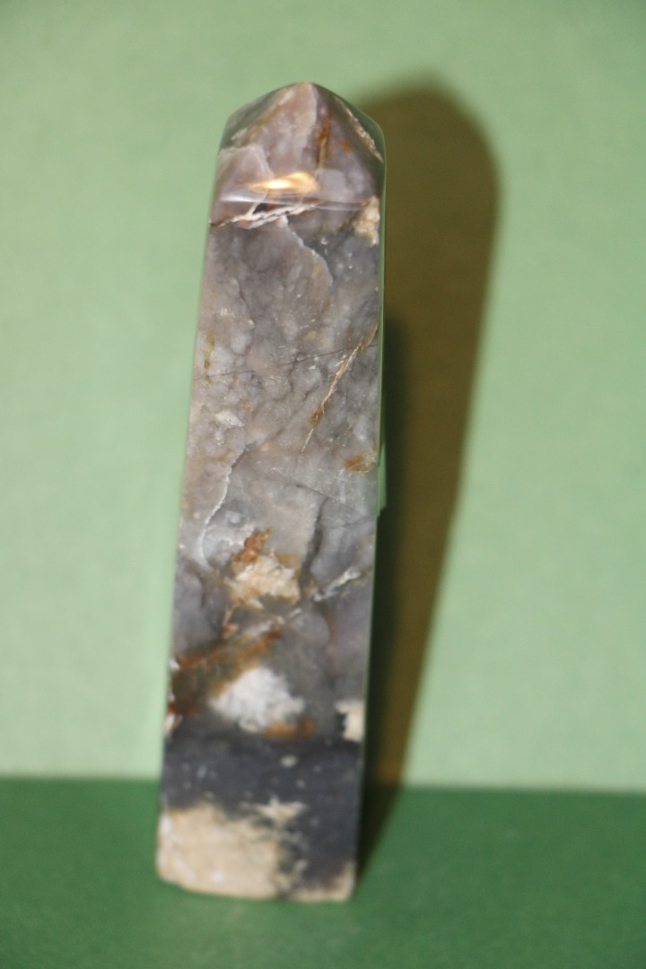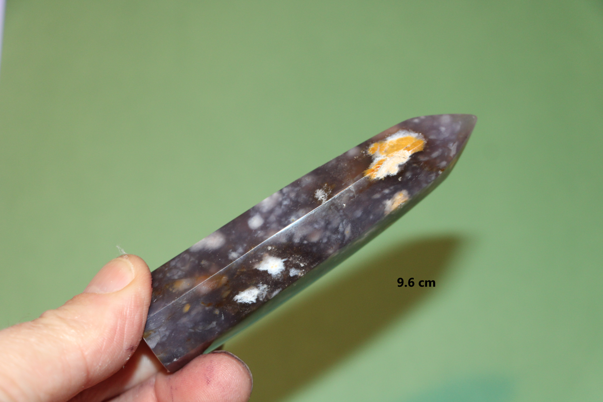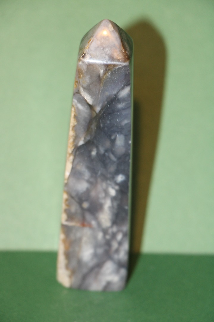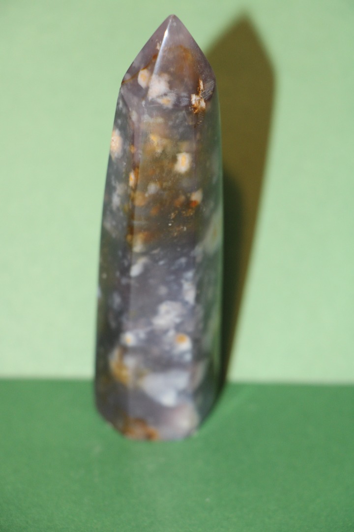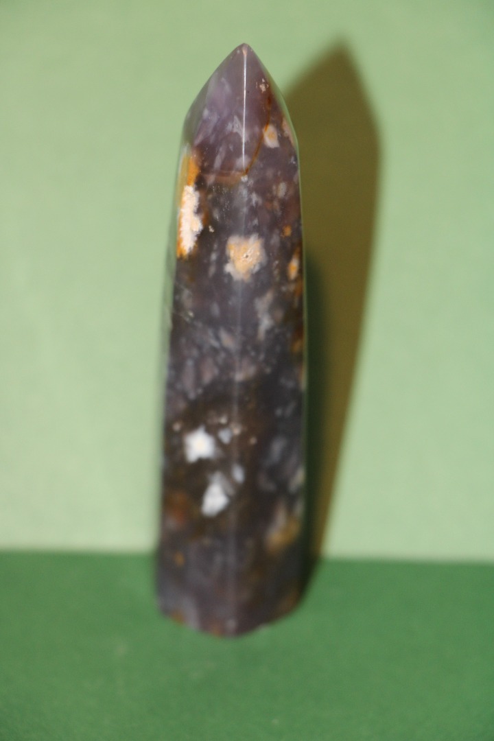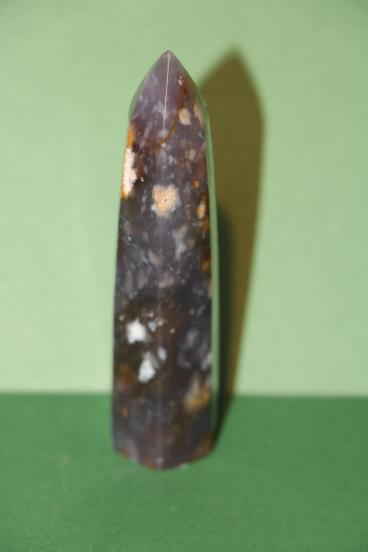 is een decoratieve en metafysische steen die in de vorm van een obelisk is gesneden, gewaardeerd om zijn schoonheid, aardende energie en mogelijke spirituele eigenschappen.