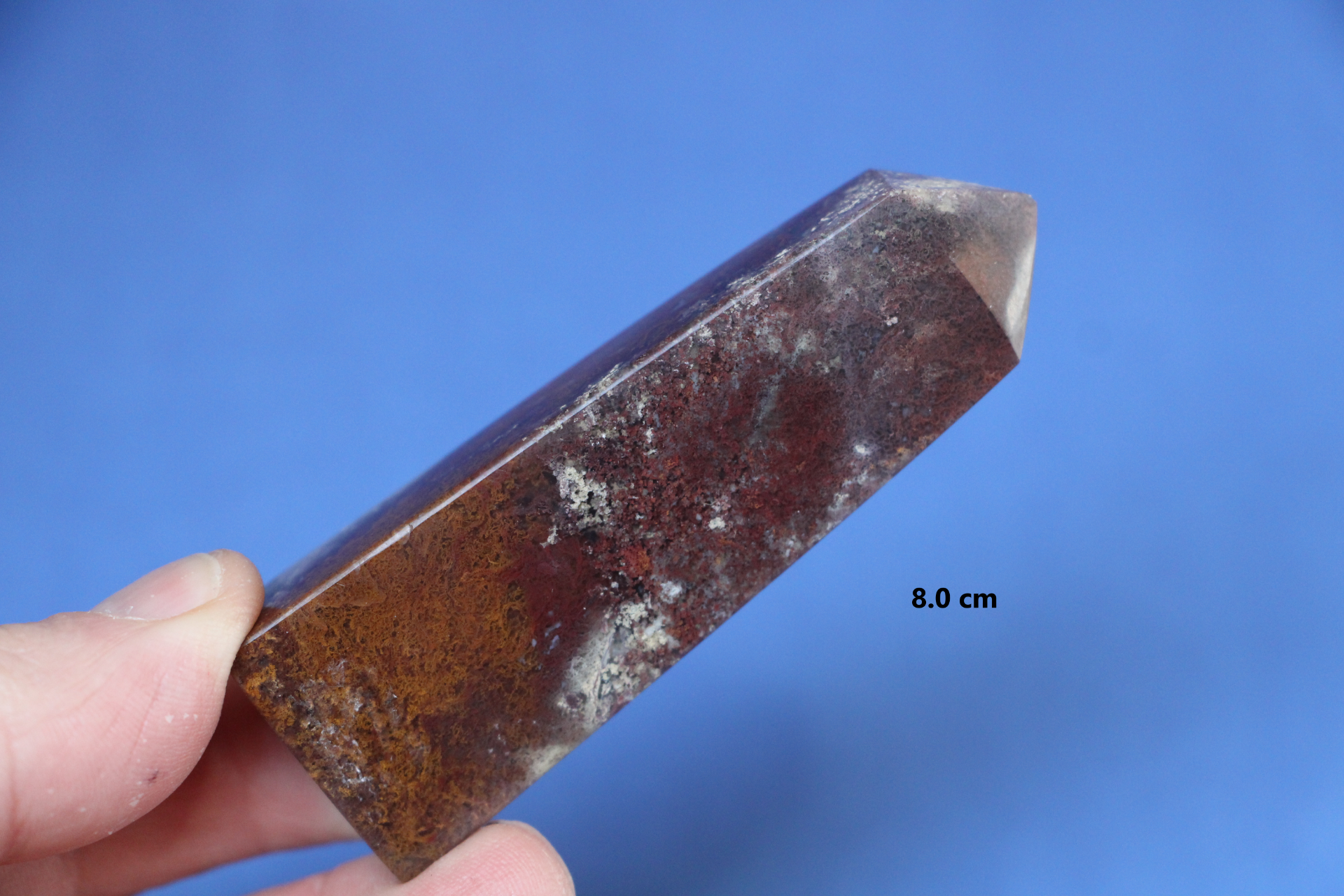 Deze prachtige extreem dimensionale steen ziet eruit alsof hij miniatuurlandschappen vol bomen, bloemen, wolken en meren bevat. Het vangt het licht op de meest intrigerende manieren en creëert schaduwen in de steen, waardoor de insluitsels van de 'bloem' en het 'landschap' worden benadrukt.